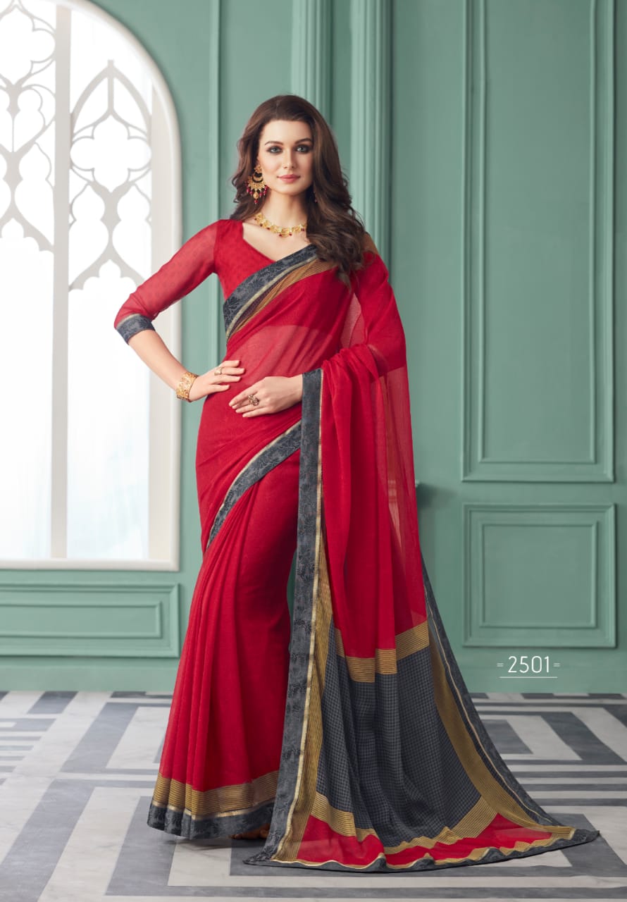 1). Catalog- Saanvi. 2). Fabric- Chiffon with Border. 3). Pcs.- 12. 4). Pack- Setwise. 5). Rate - 510 per pcs . Delivery 2 days |