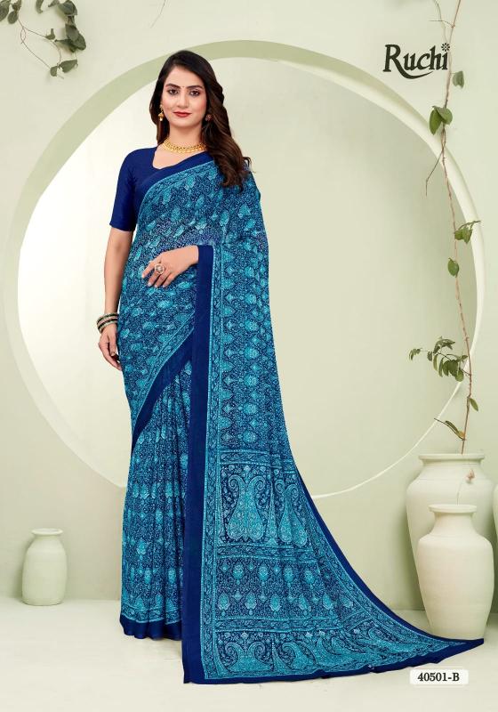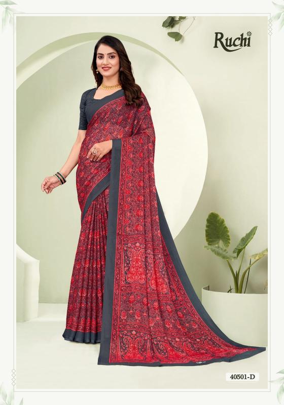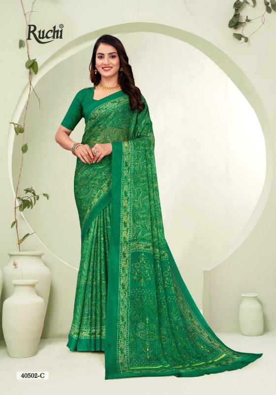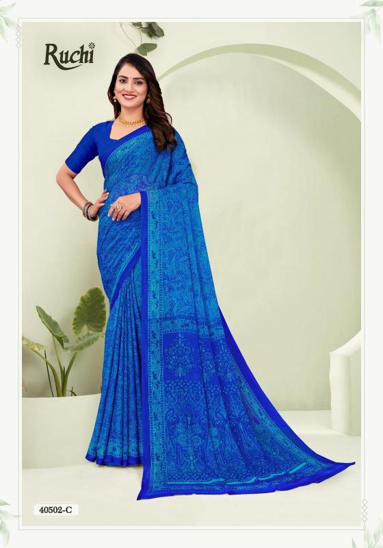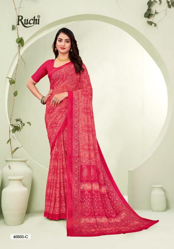 ruchi star chiffon 188 printed casual wear sarees exporter