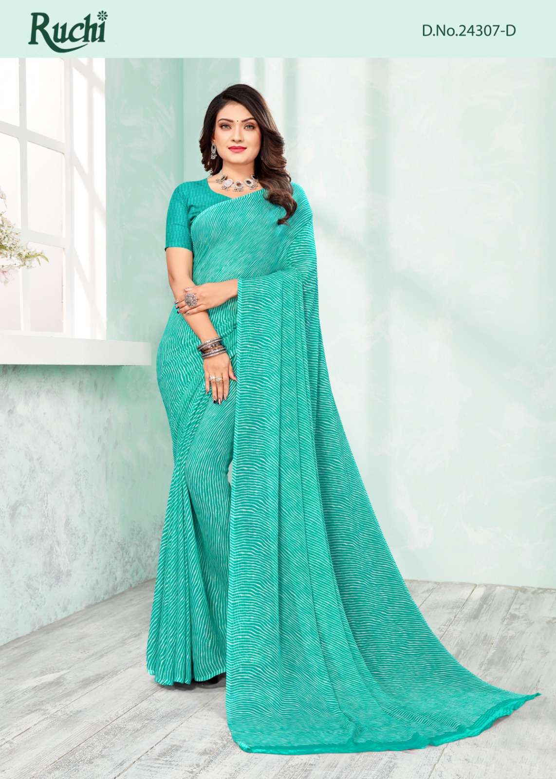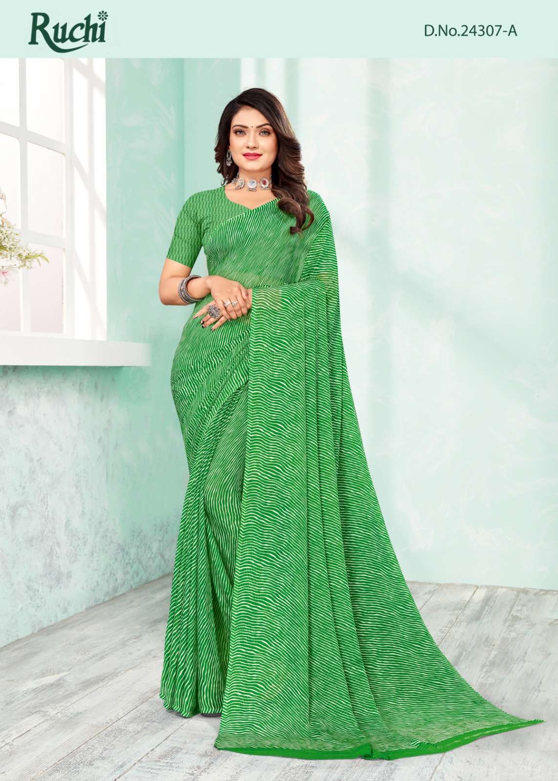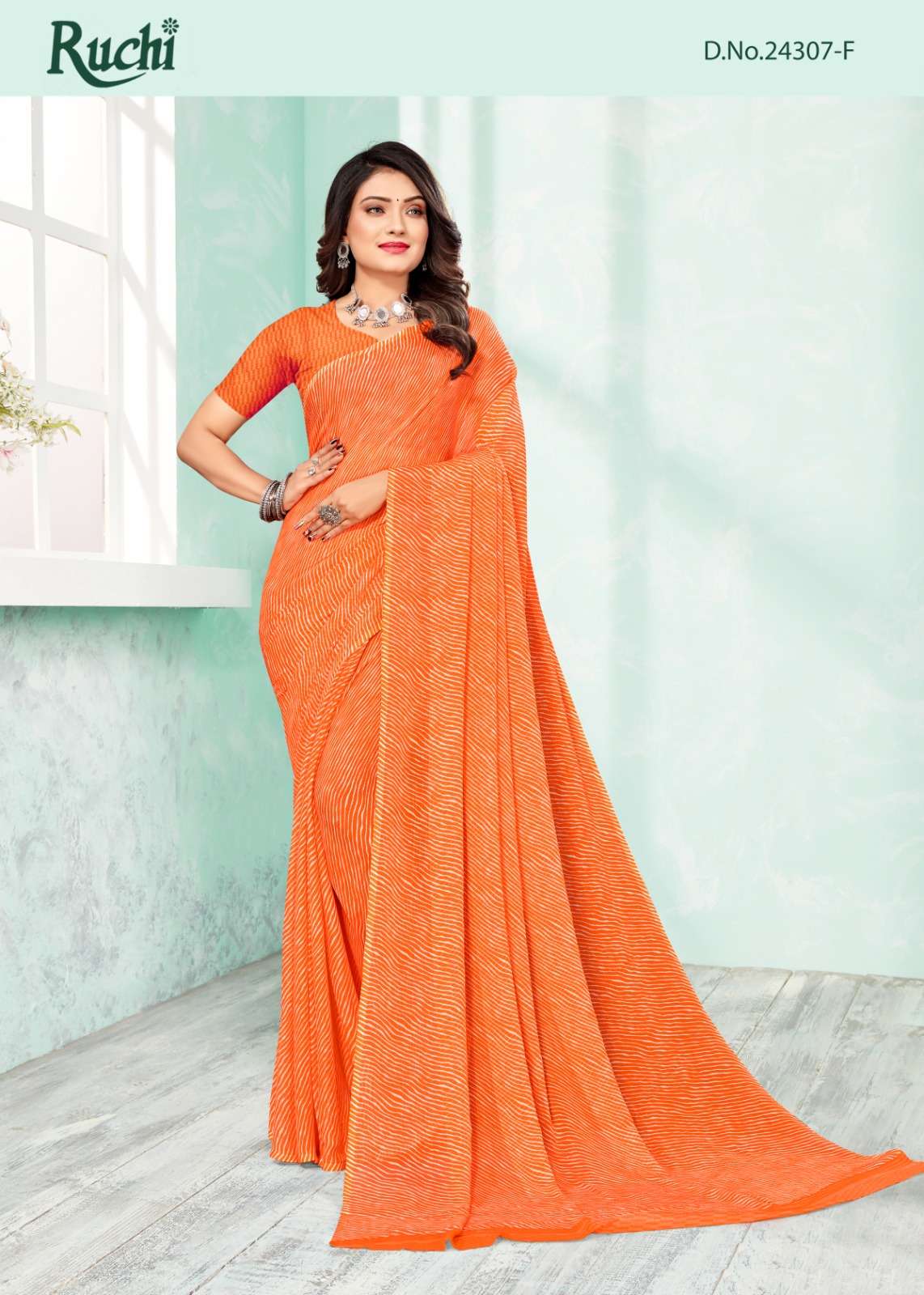 RUCHI SAREES FOLDER - STAR CHIFFON LEHRIYA - 110. '24307' PCS. - 06. FABRIC - CHIFFON SAREE. WEIGTH - 450 GRAMS APPROX. |