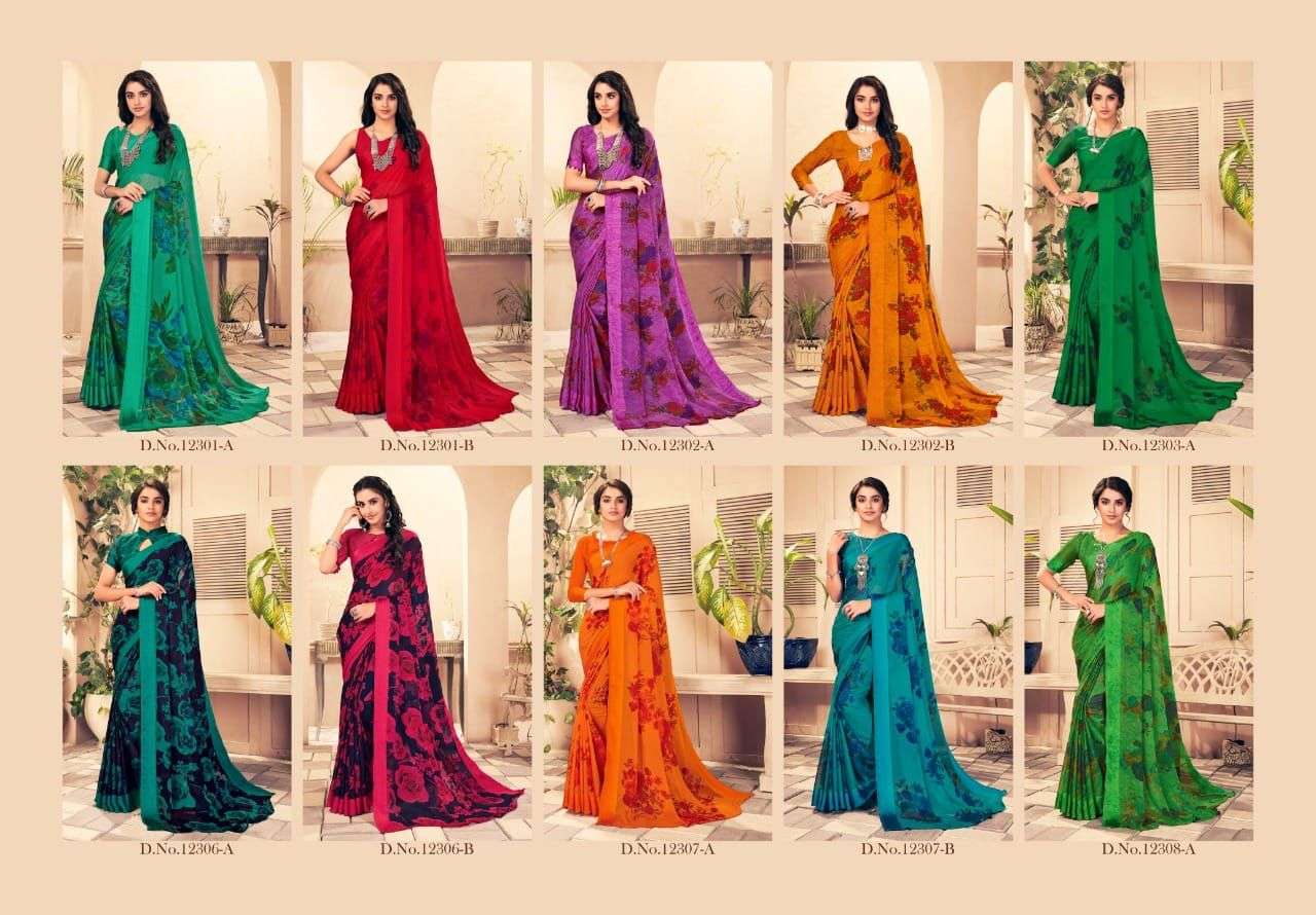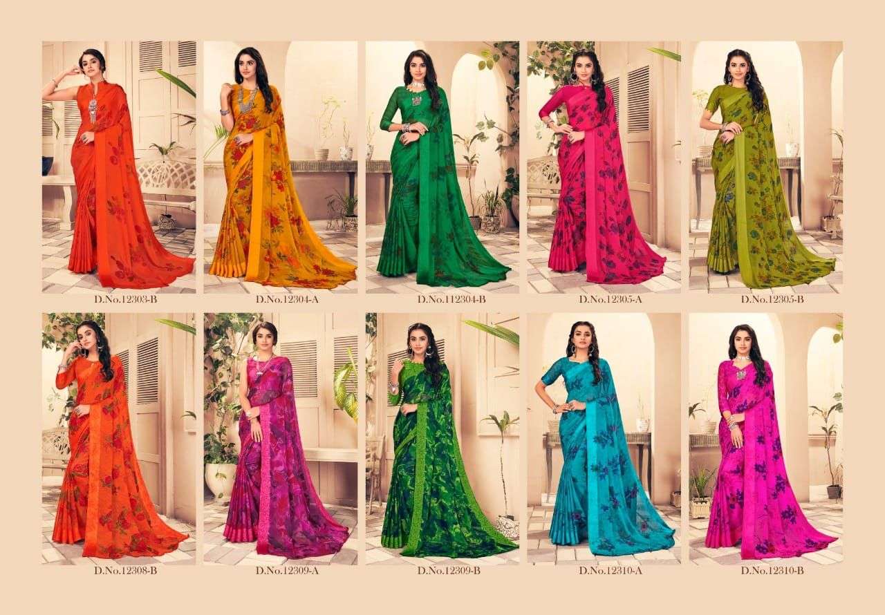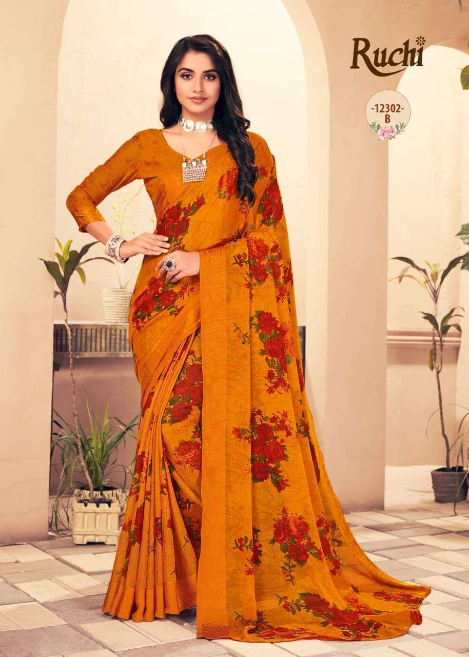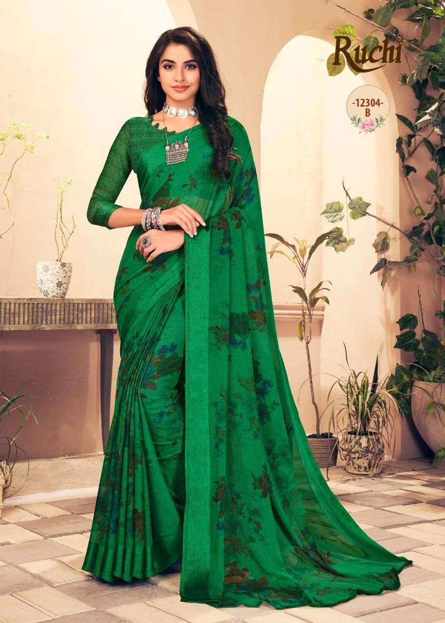 Ruchi Sarees. 1). Catalog - STARWBERRY 18th Edition. 2). Fabric - Chiffon Sartin Border. 3). Pcs.- 20 4). Packing - Setwise. 5). Rate- 460/- per pcs Set to set. GST 5 Percent Extra. Delivery 2 days |