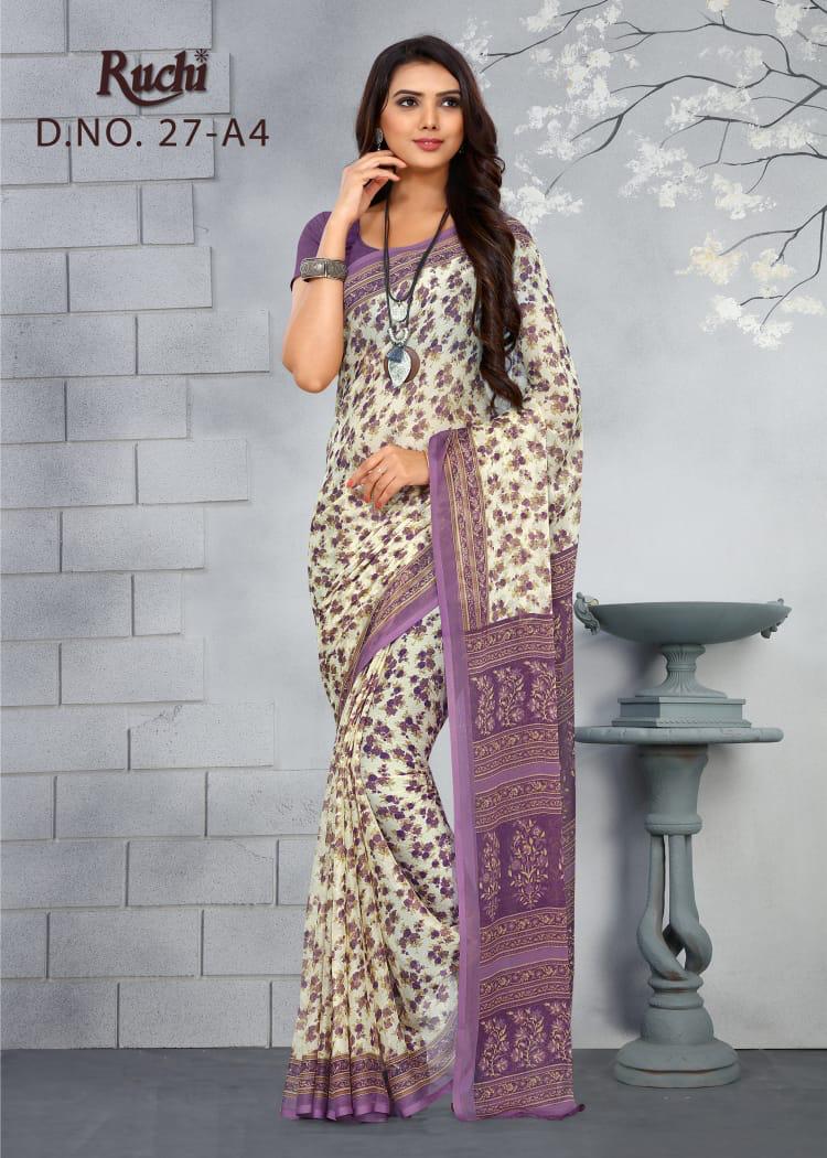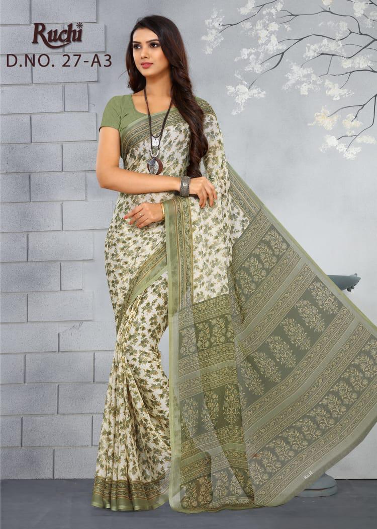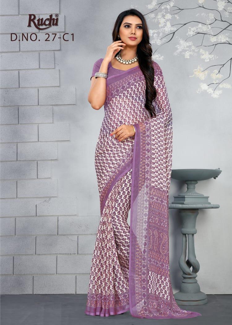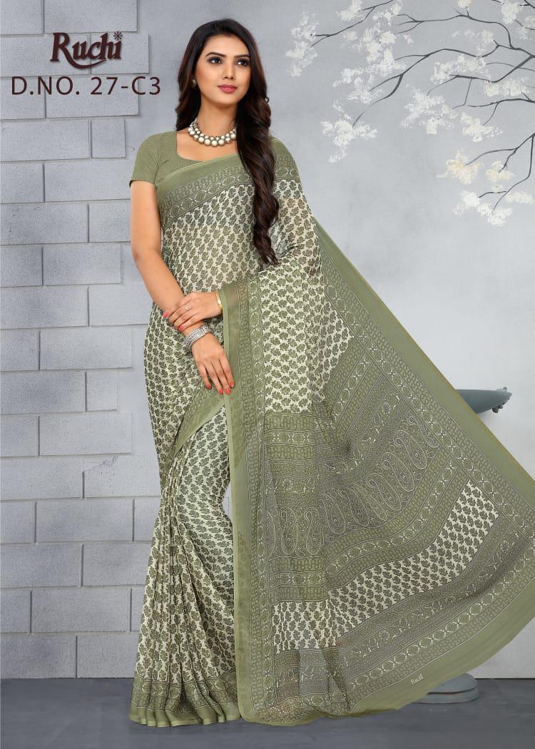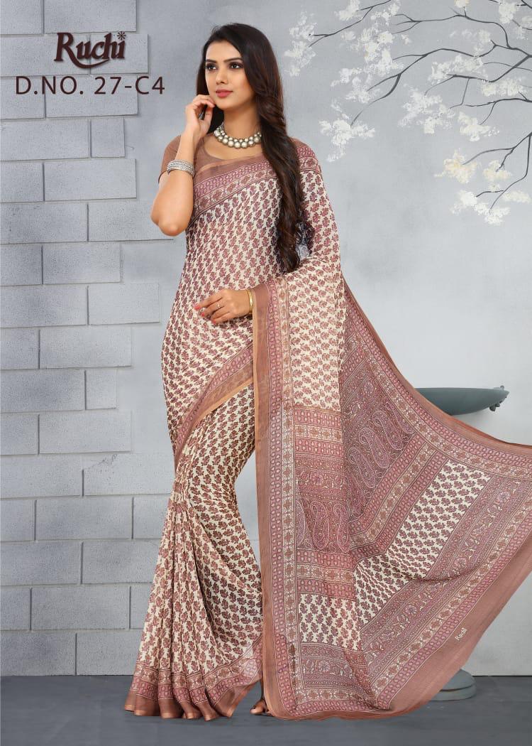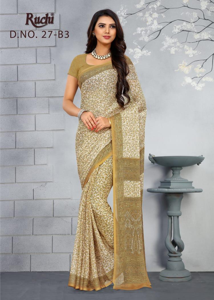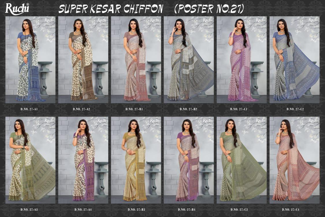Ruchi Super Kesar Chiffon 27 Printed Chiffon Saree Wholesaler