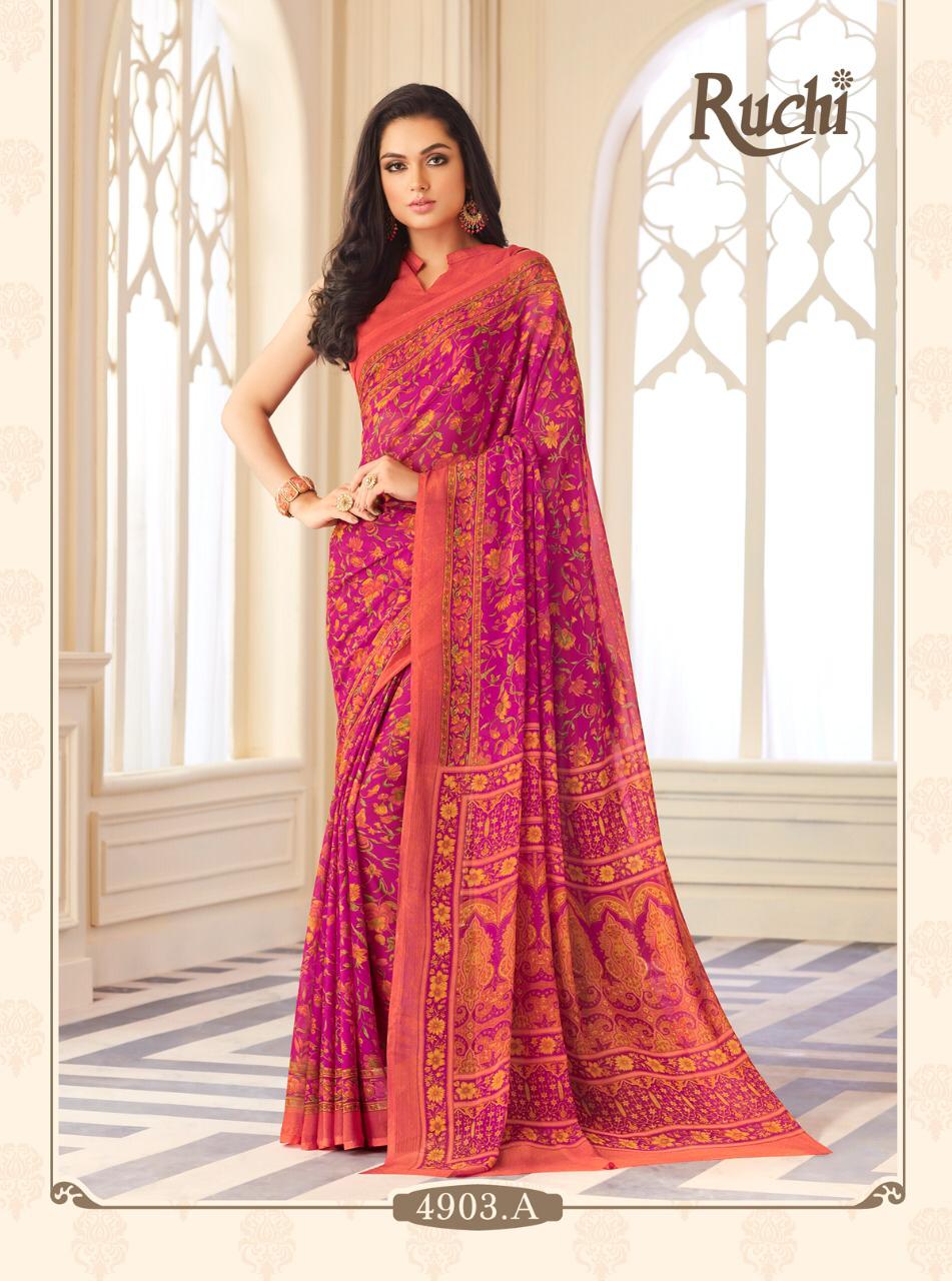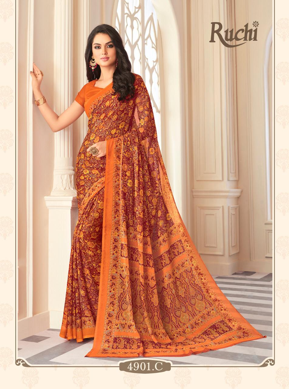 Ruchi Super Kesar Chiffon Vol 49 Printed Chiffon Casual Wear Saree Designs