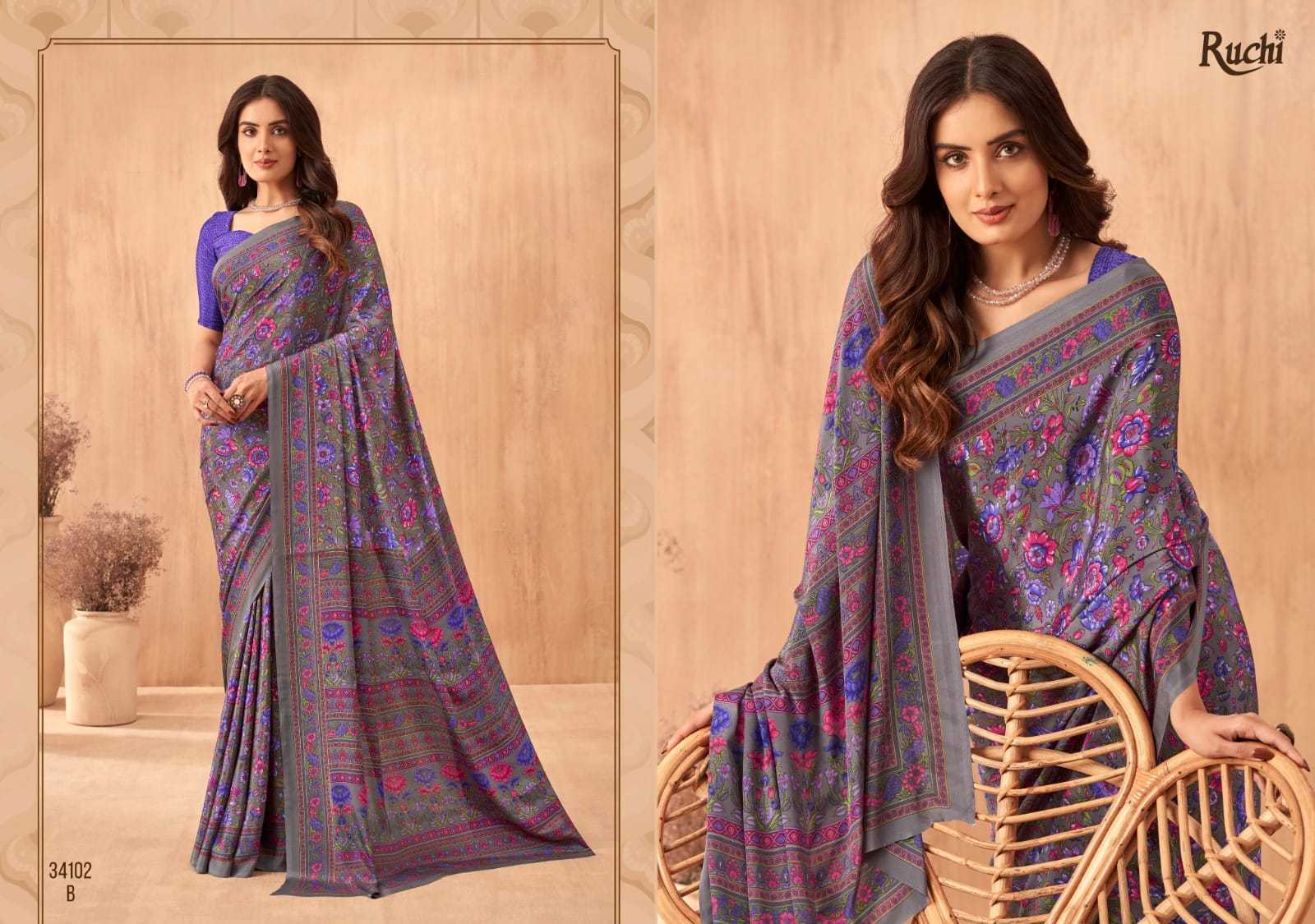 ruchi vivanta silk vol 34 silk crepe printed saris at best rate