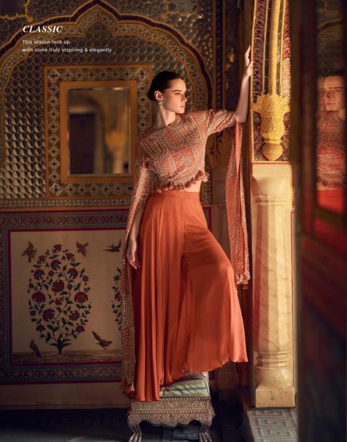 SAYURI DESIGNER RUCHIKA (4 PCS) FABRIC - PREMIUM REAL CHINON SILK ( HEAVY LOOK PREMIUM CHINON SILK FRONT AND BACK EMBROIDERED LONG SLEEVES TOP WITH PLAZZO ) PRICE - 2899/*- |