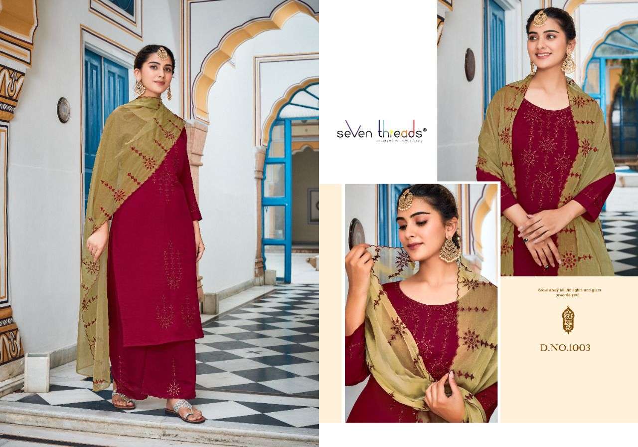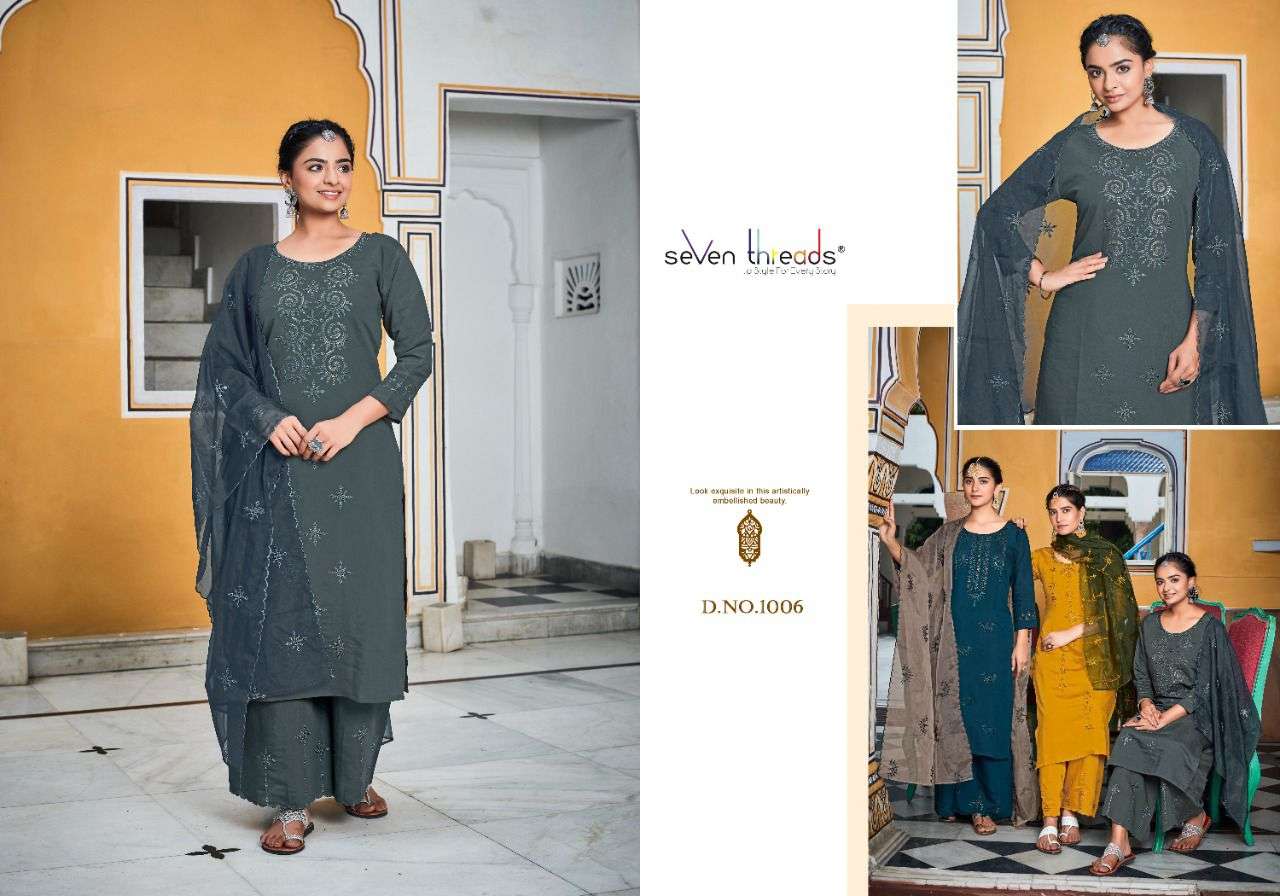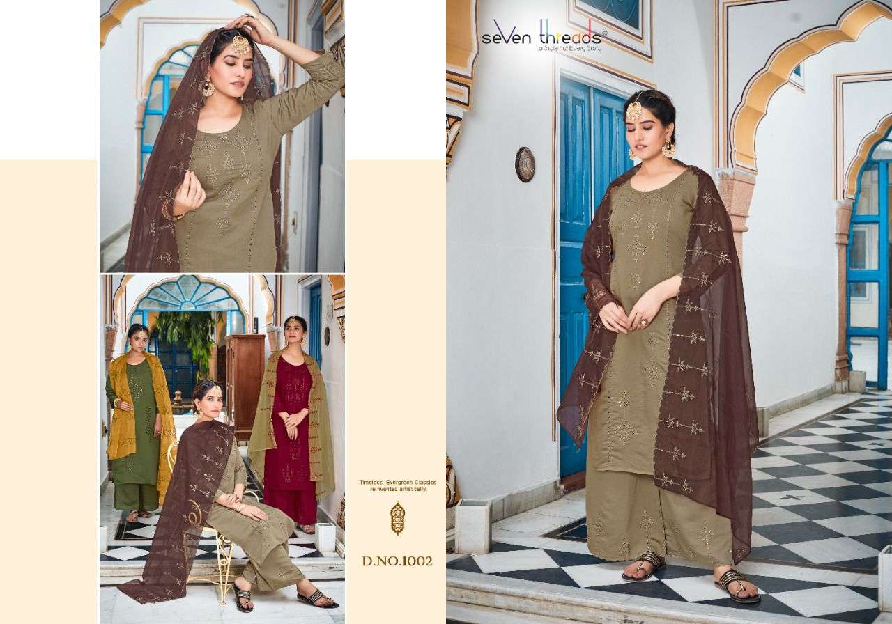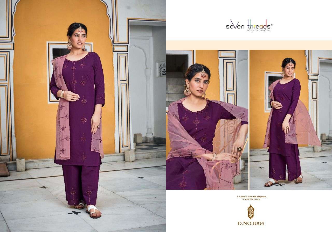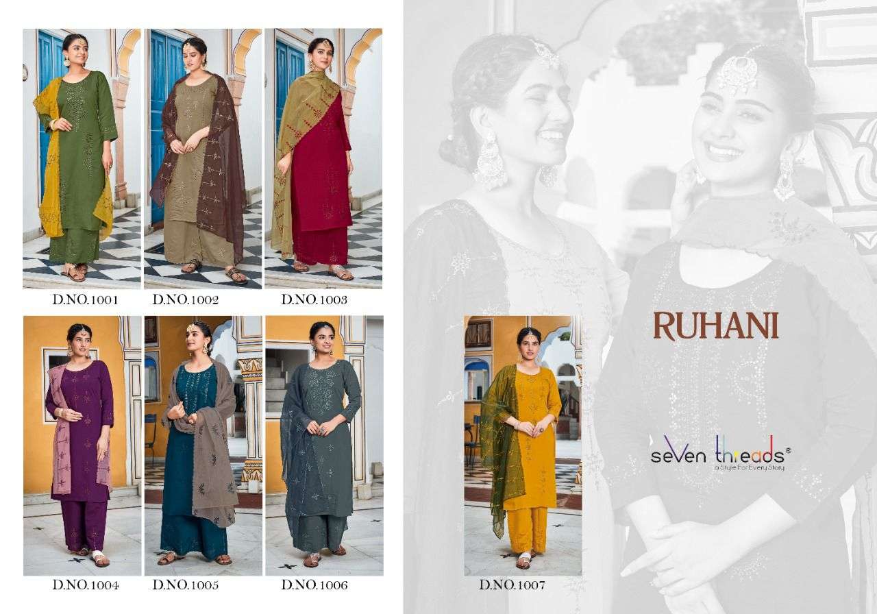 We’re proud to announce the launch of our new catalogue as part of the ongoing evolution of our brand ”SEVEN THREADS” Catalogue name:-RUHANI * 🛍 - 7 Designs *👗Fabric - Top 👚 -Roman Silk(with cotton inner ) *🎗Size - M , L , XL , XXL , XXXL *🔸Length - 46+ *🧶Work - Top 👚 - Elegant Borer work with Hand Sequence work ✅Type - Full stitched 💰- 1191 /-Rs. Note:- Must see PDF and Video for clear view of Borrer work and There will be a slight color difference between the photo and the original pcs … |