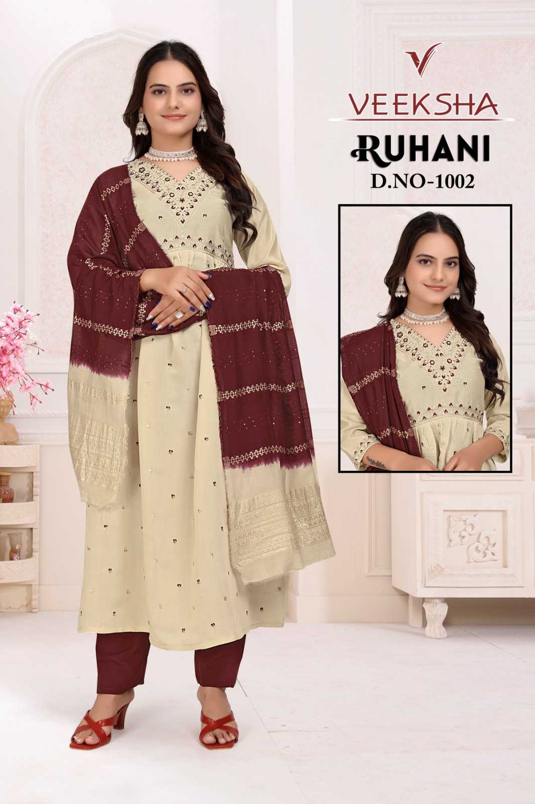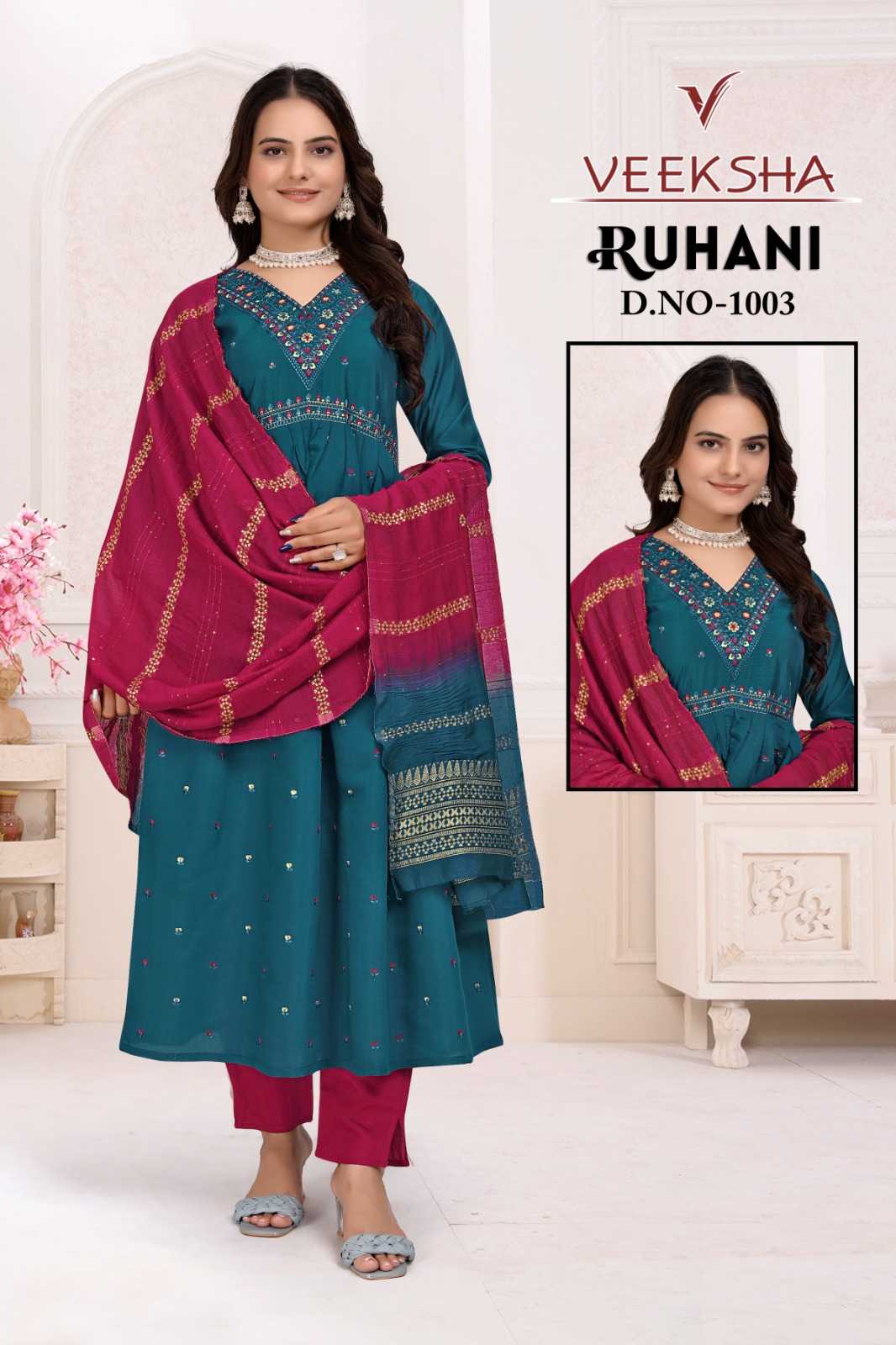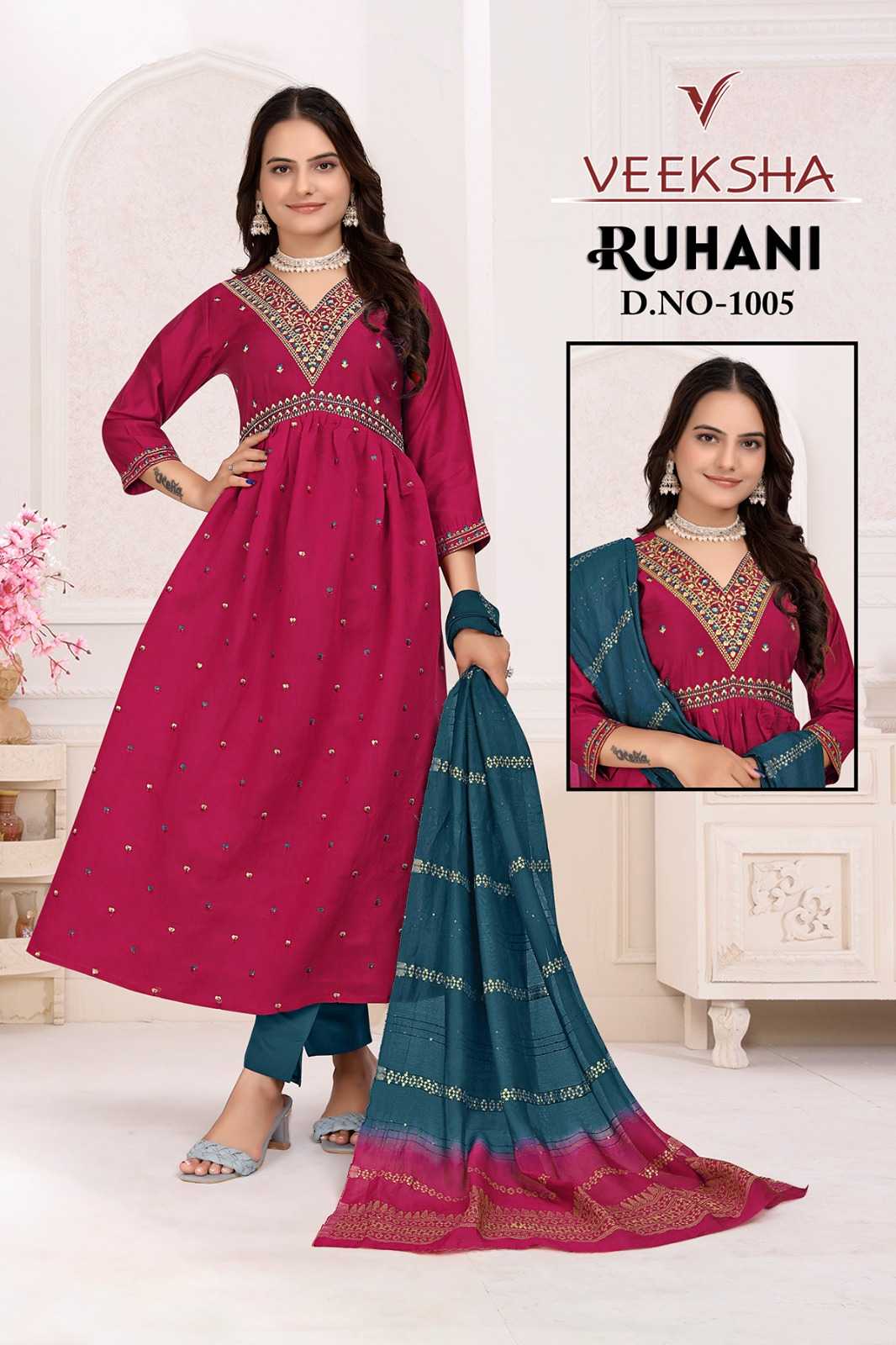 ruhani by veeksha adorable roman aaliya with embroidery work full stitch combo set kurti