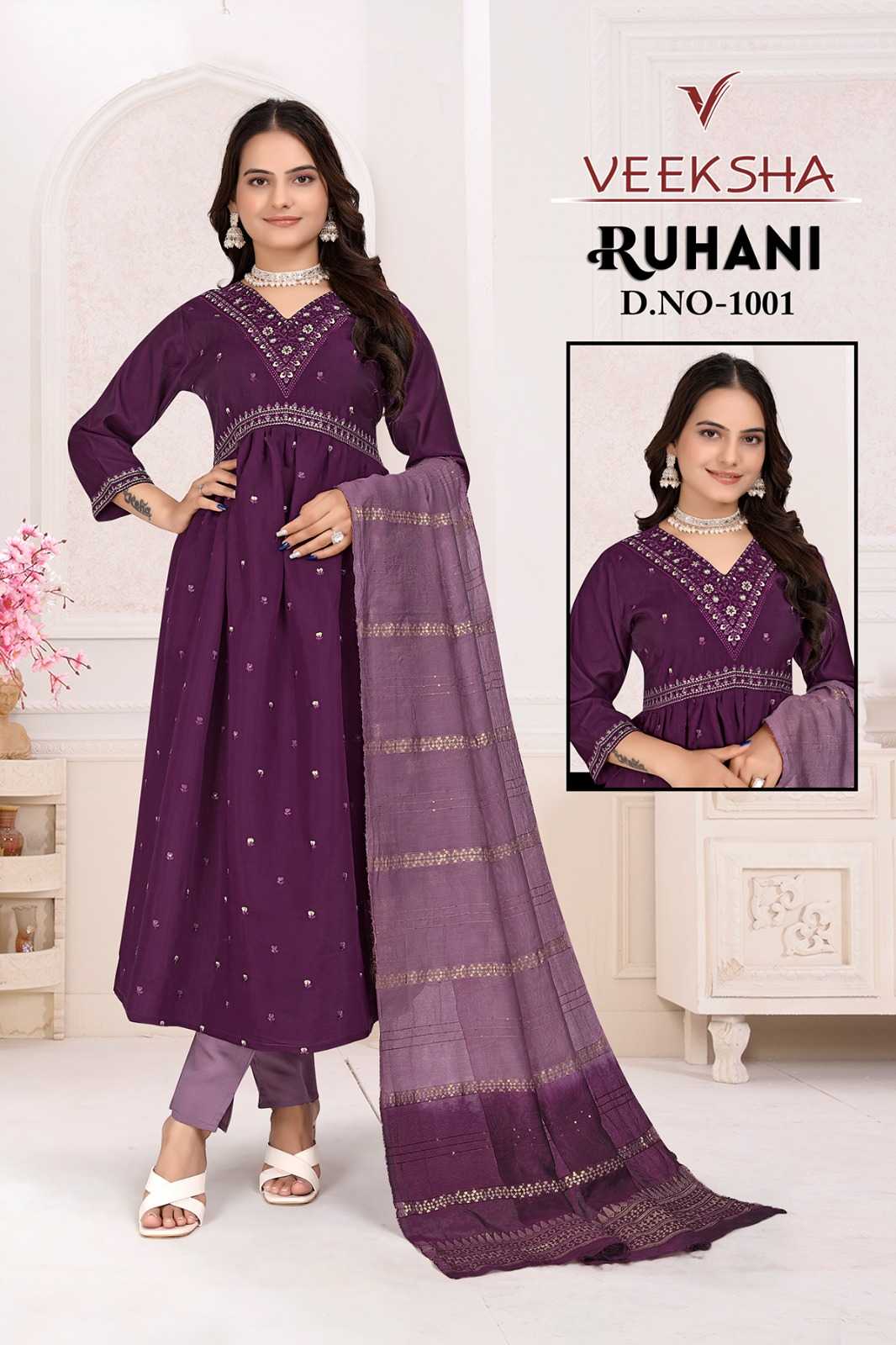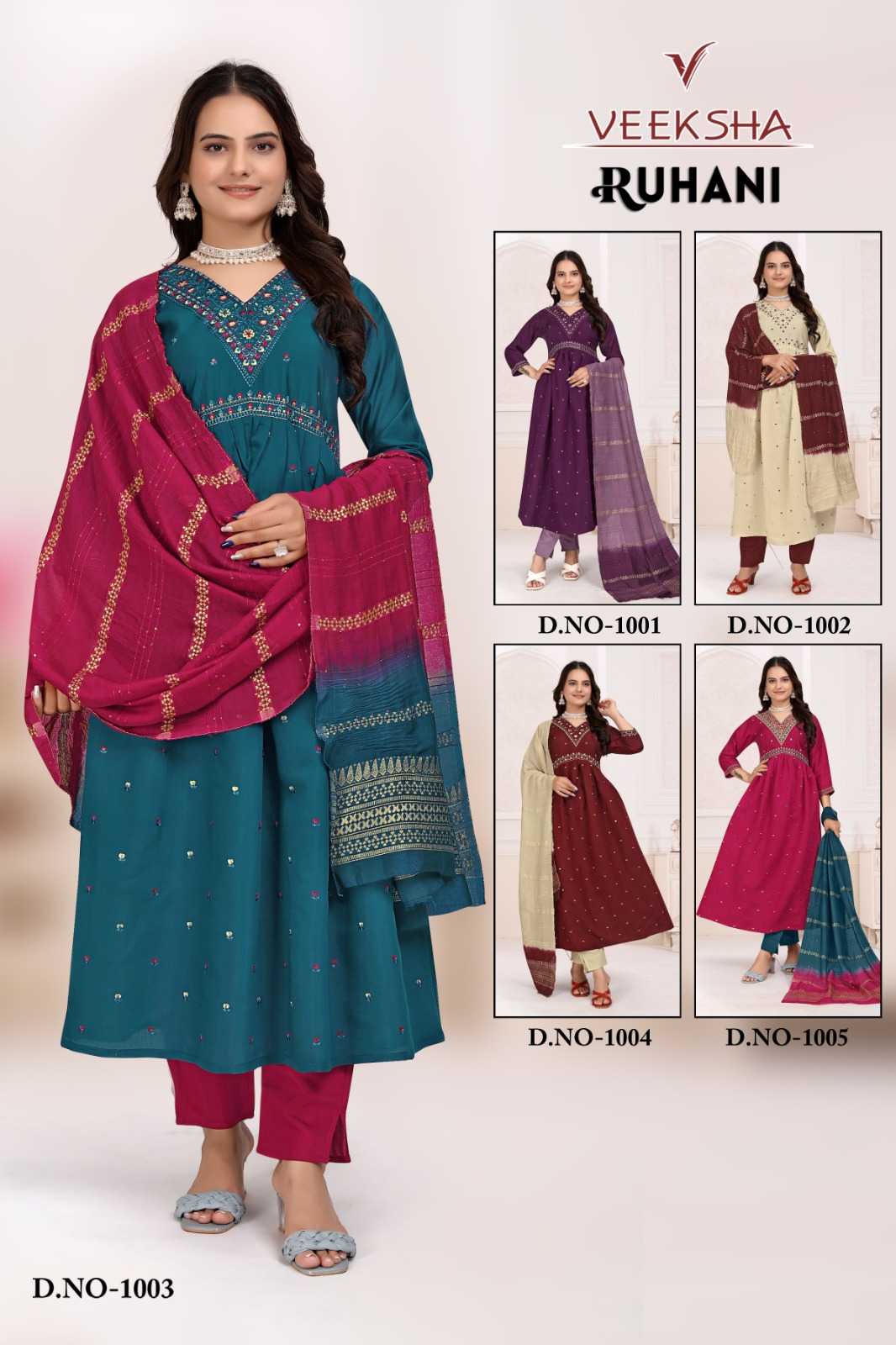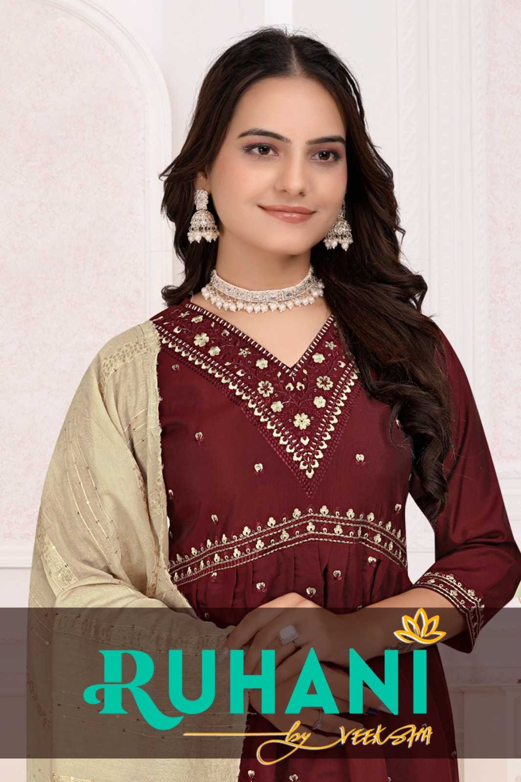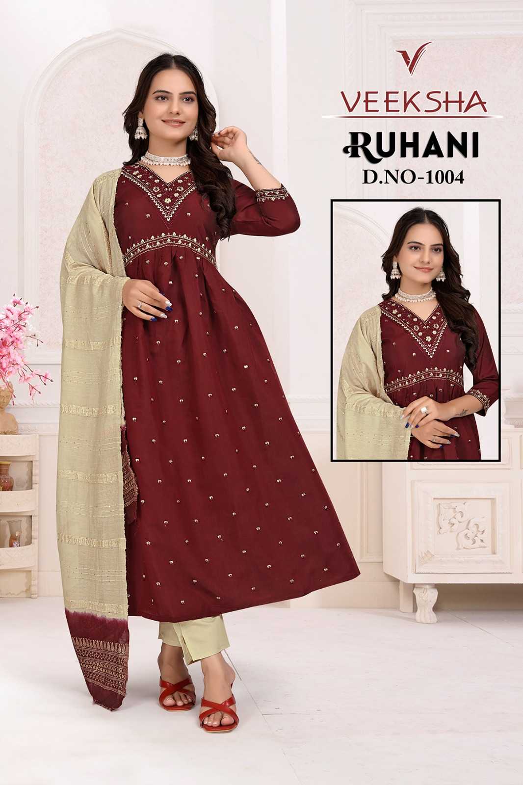 ruhani by veeksha adorable roman aaliya with embroidery work full stitch combo set kurti