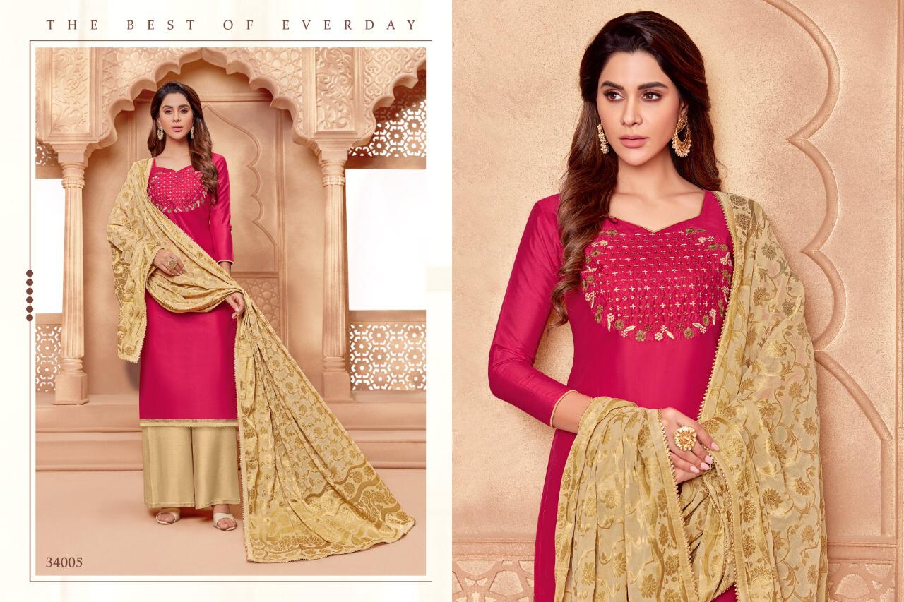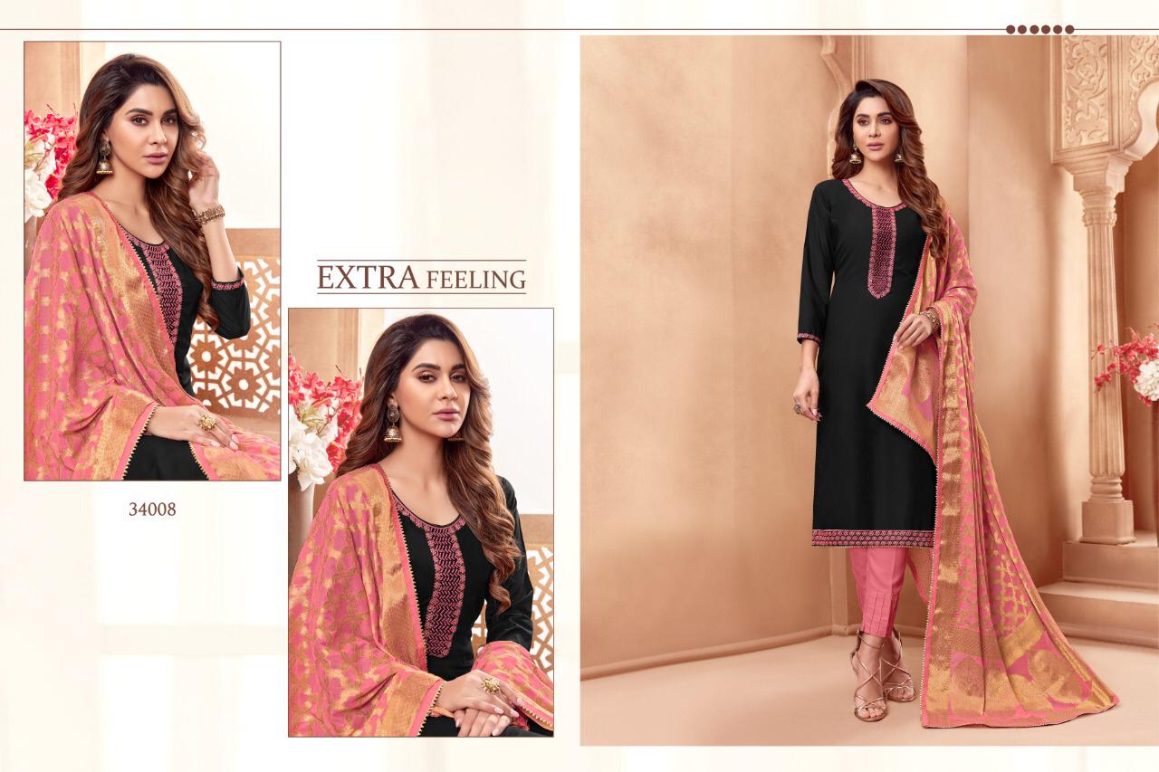 _RUMANI vol-2_by Raghav - A fancy handwork top with exclusive jecord dupatta Top: Heavy Dyable Modal Silk with Handwork, 2.00mts, length 45+ Dupatta: Fancy Jecord, 2.25mts Bottom: Cotton, 2.50mts Rate- 711 per Pcs . Set to set . GST 5 Percent Extra. By Raghav Royals Delivery from today |