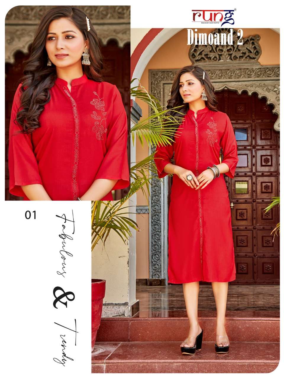 rung diamond vol 2 rayon work casual wear kurti