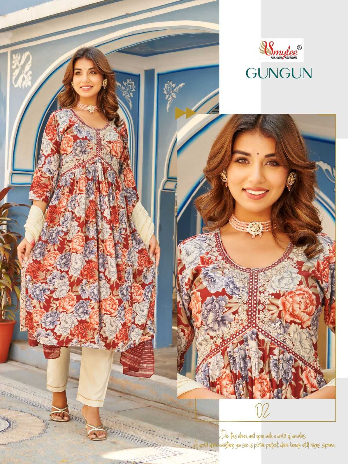 rung gungun readymade embroidery work alia cut kurti pant dupatta