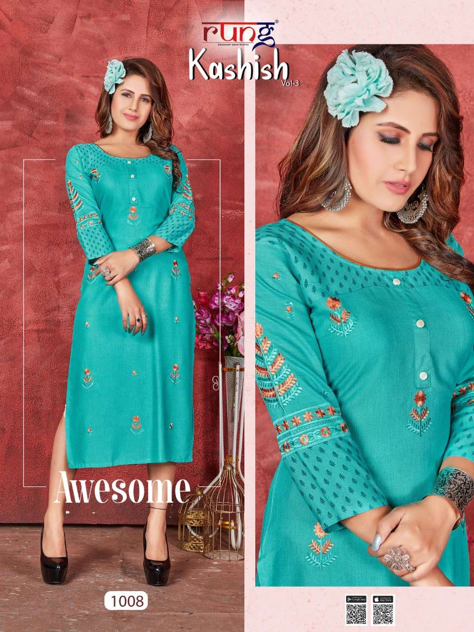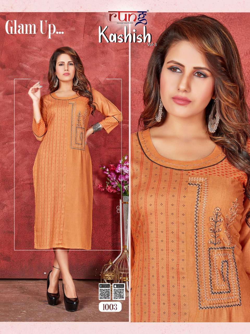 rung kashish vol 3 rayon work daily wear fancy kurtis