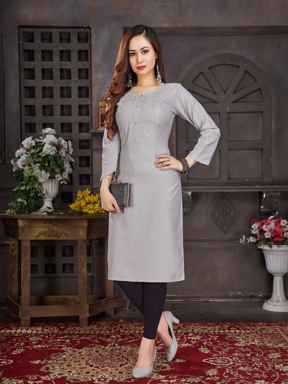 Brand - Rung FEBRIC..HEAVY EMBOSSED PRINT RIYON WITH EMBROIDERY PC's. 8 Size. M. L. XL. XXXL Rate Per pcs rate Rs.455 |