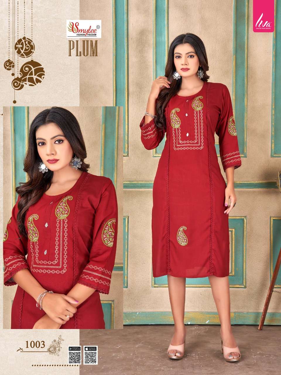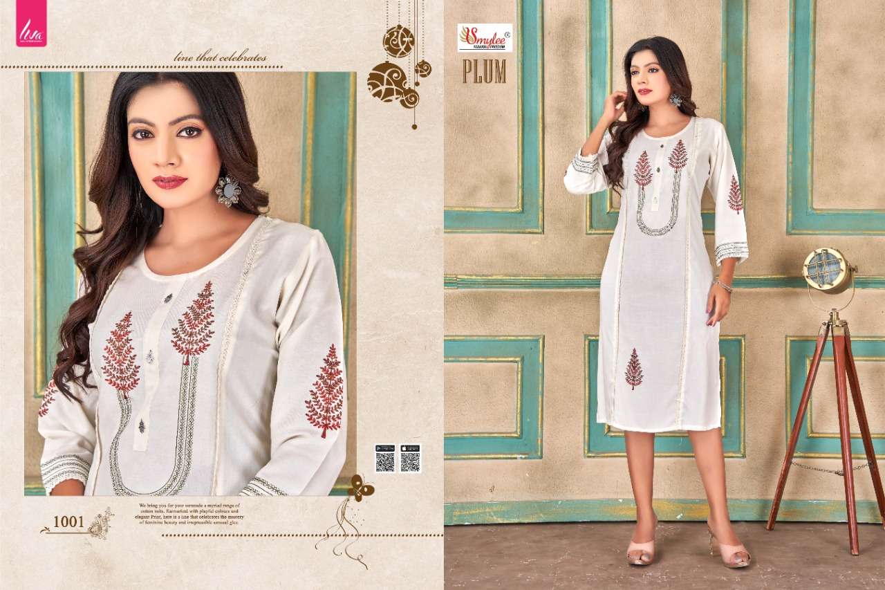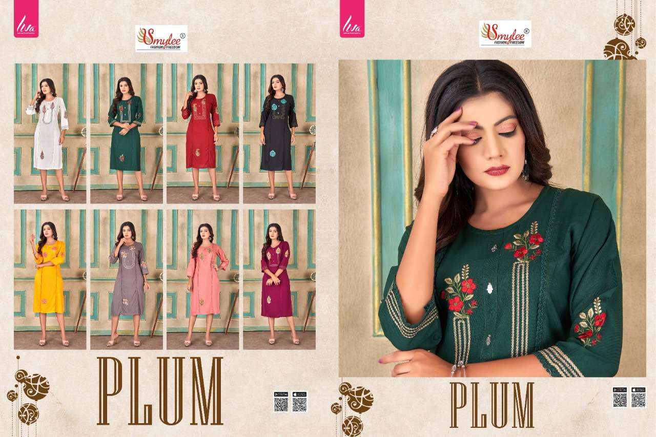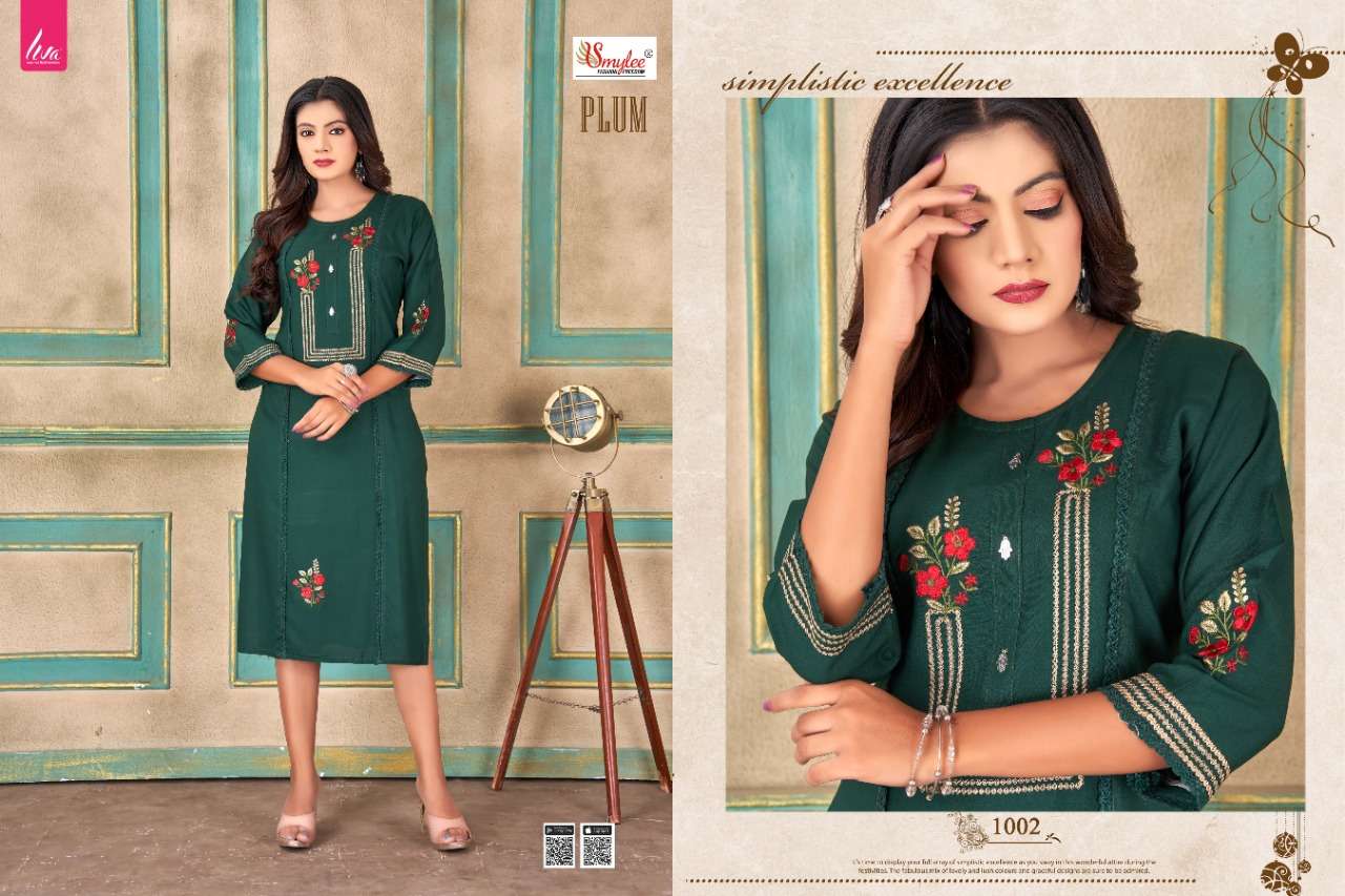 rung plum rayon liva fabrics embroidery fancy kurti