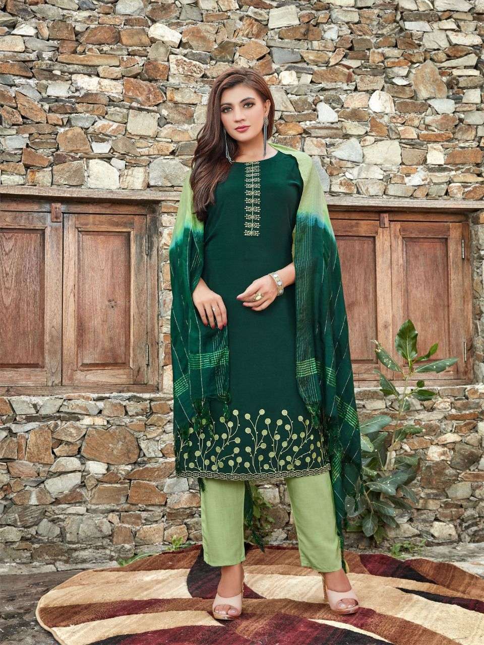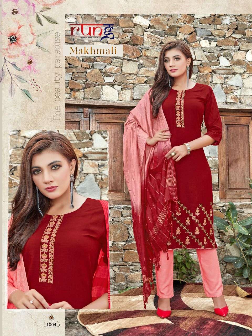 Brand - Rung FEBRIC. TOP.. Heavy slub riyon WITH neck and daman embroidery WORK BOTTOM. HEAVY slub riyon Duppata .full size corona silk.