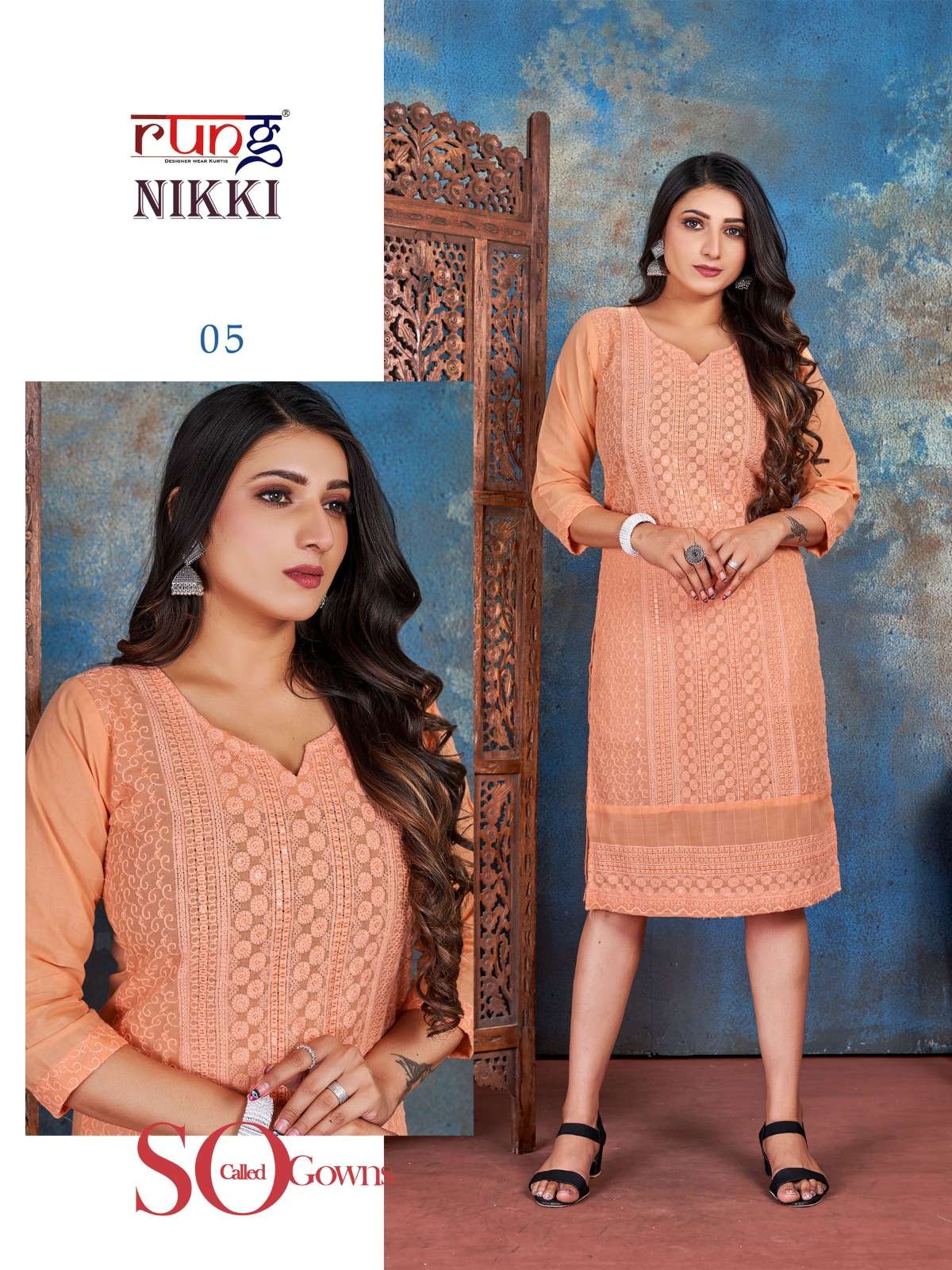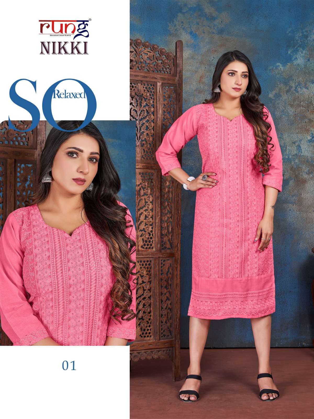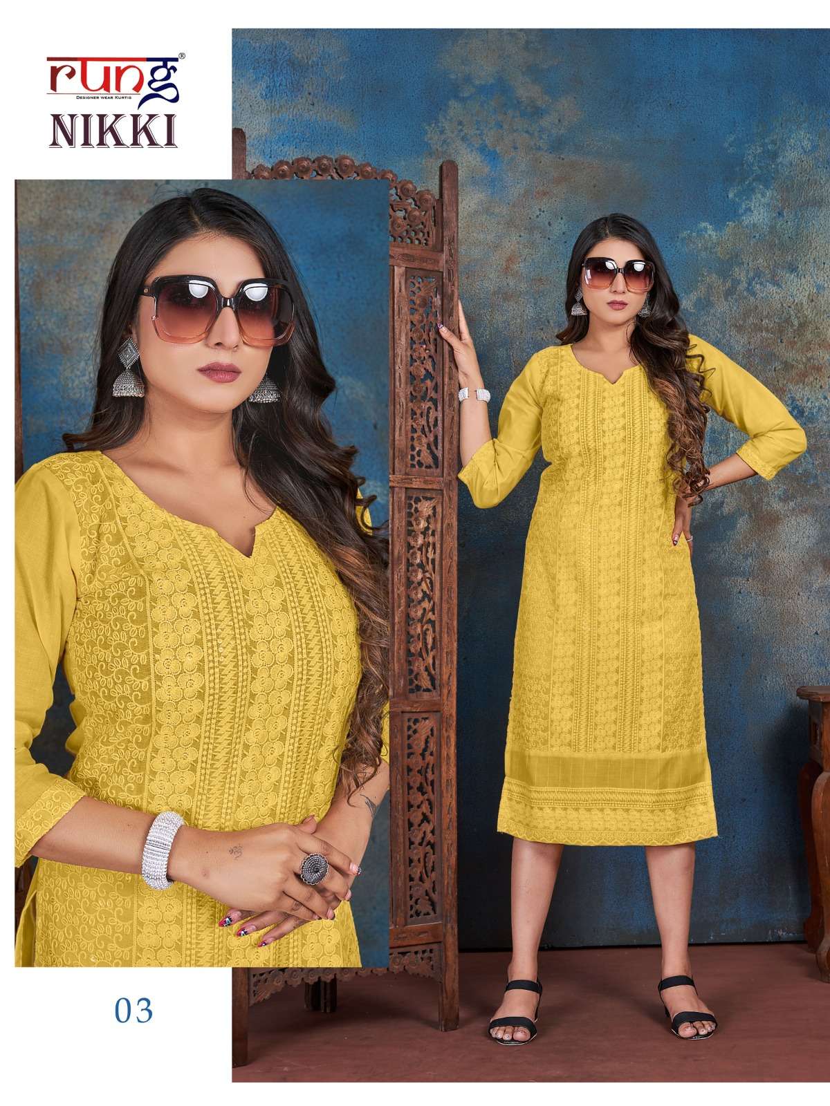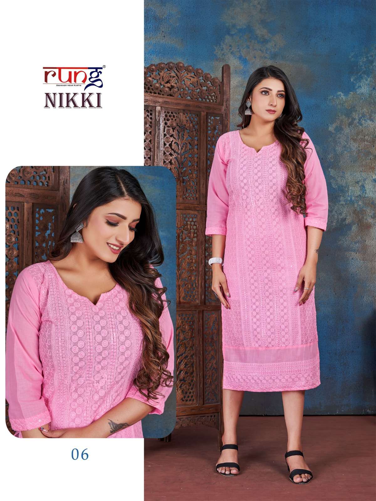 rung present nikki designer chikan rayon kurtis online wholesaler