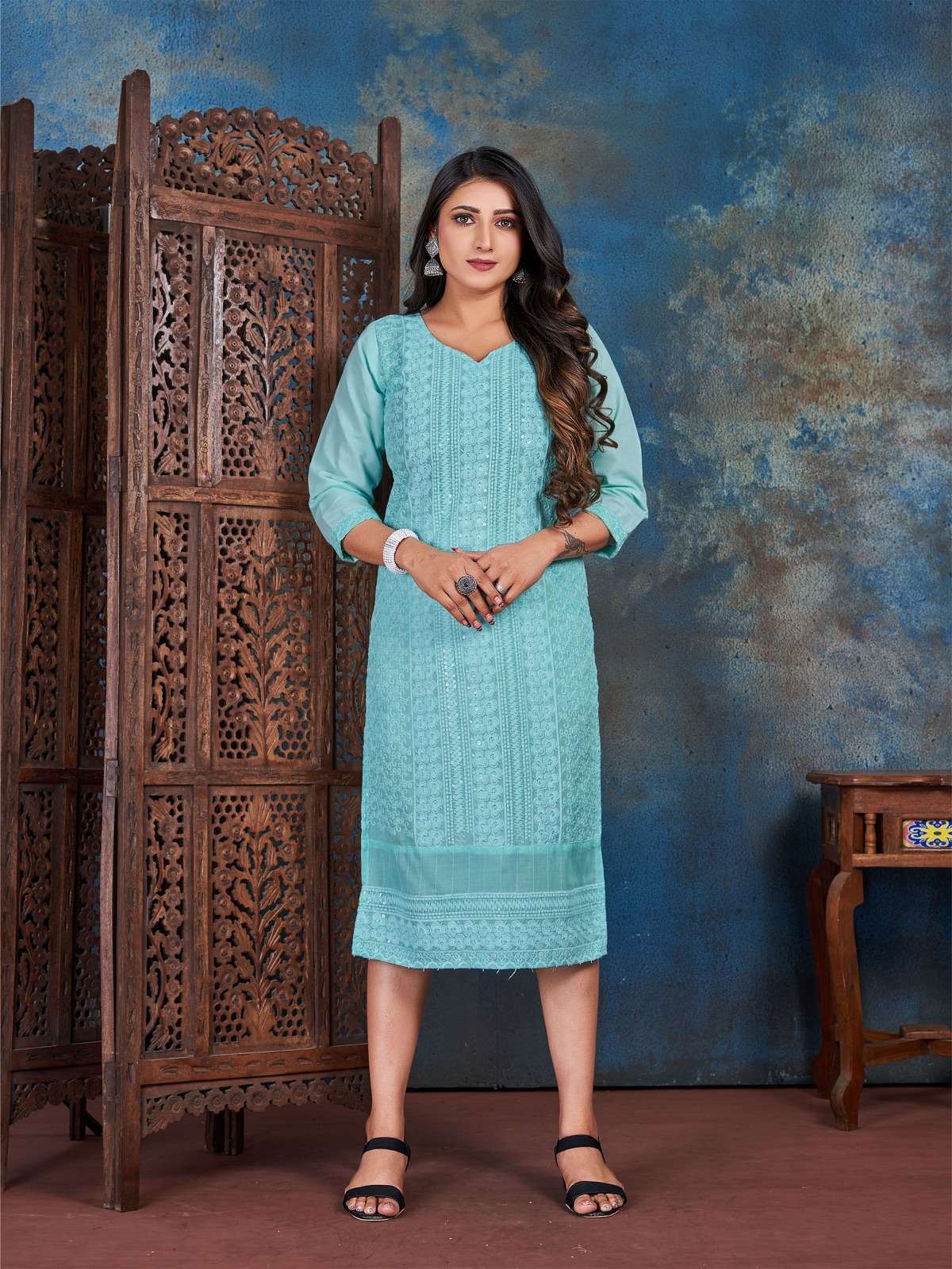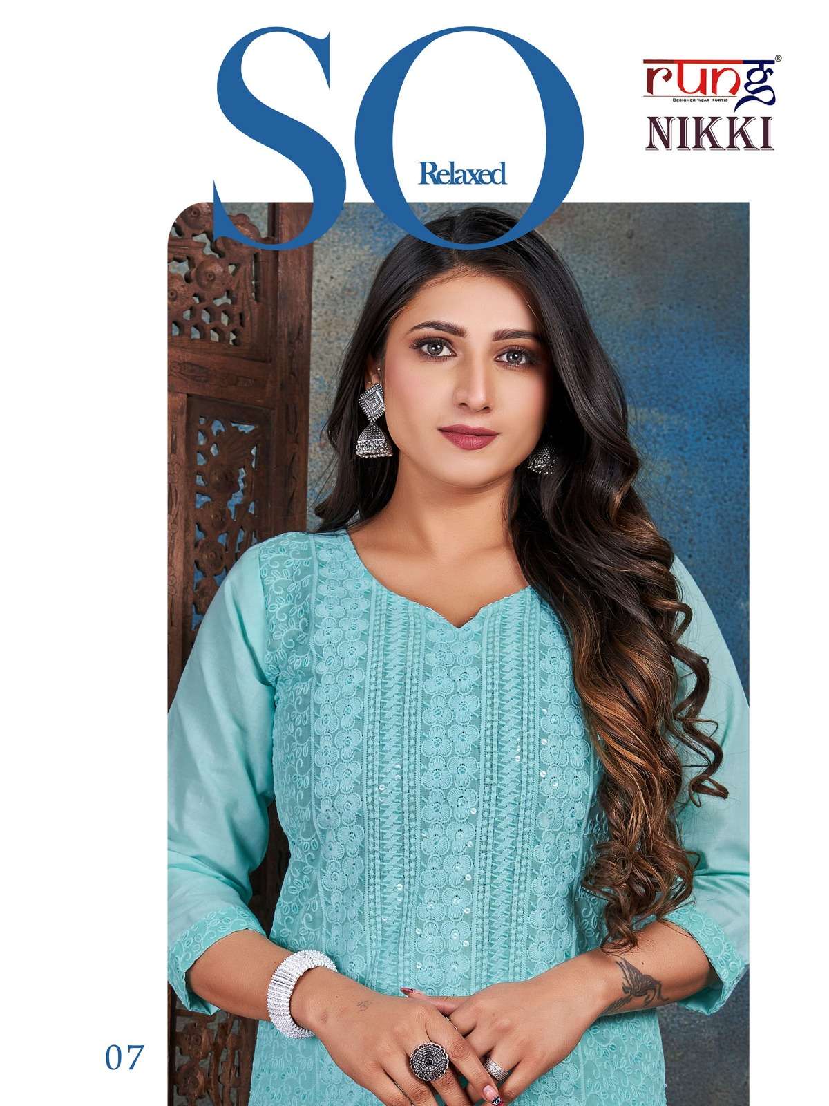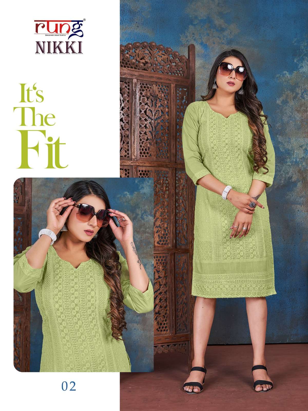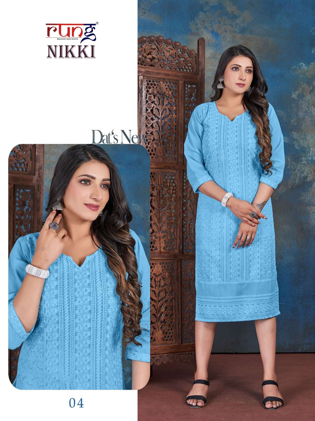 rung present nikki designer chikan rayon kurtis online wholesaler