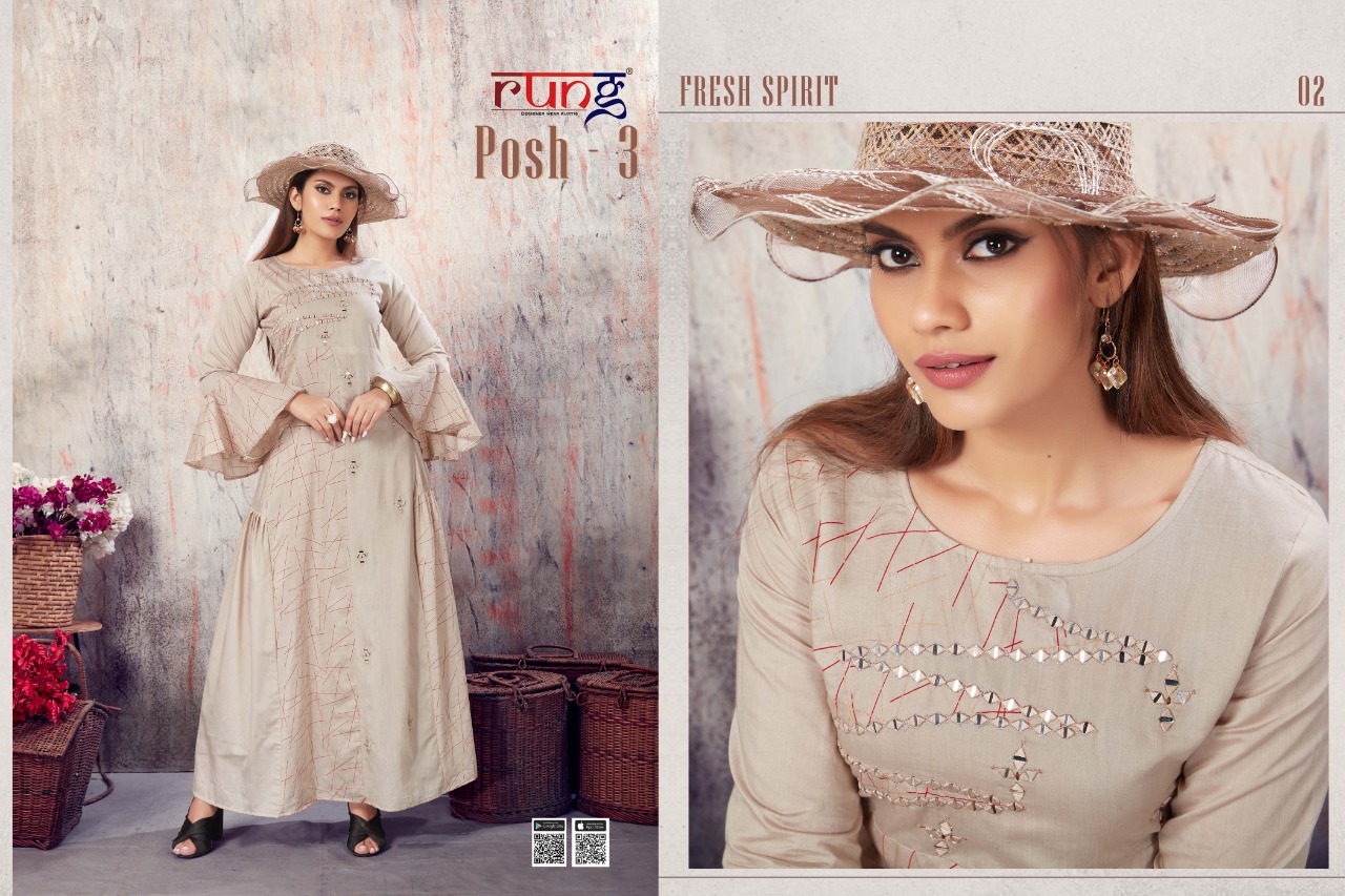 Rung Present Posh Vol 3 Long Gown Style Fancy Kurti Online Supplier