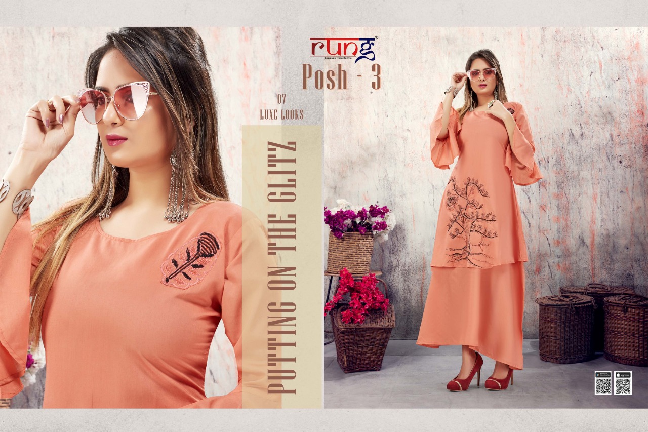 POSH vol 3 KURTI CATLOG FABRIC.ALL DIFFRENT HEAVY FABRICS PCS 8 SIZE M L XL. XXXL Rate 740 RUNG |
