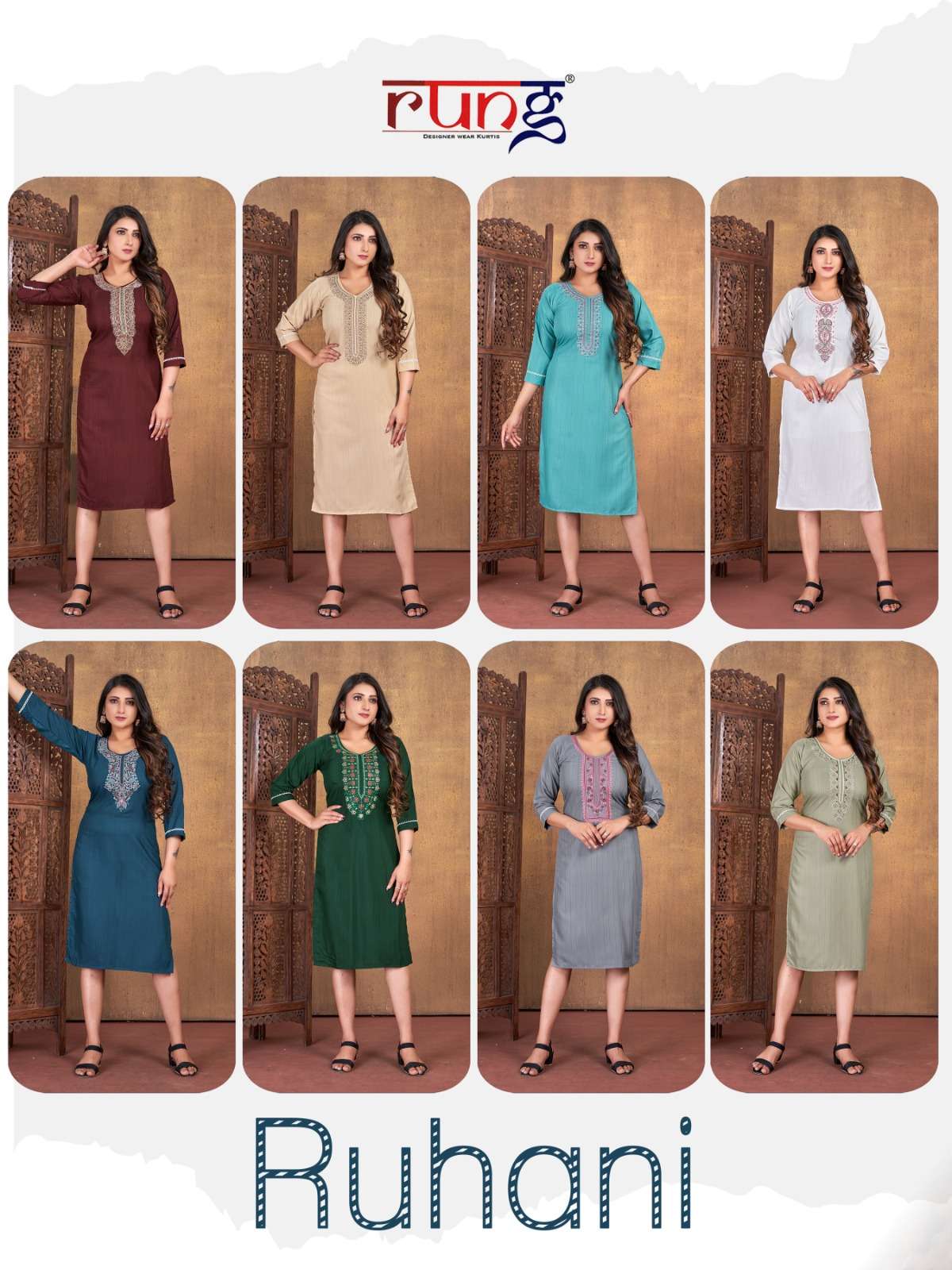 RUNG PRESENTS OUR NEW KURTI CATALOGUE 💮RUHANI💮 FEBRIC.. 8️⃣PEICE SET Size. M(38). L(40). XL(42). XXL(44) Per pcs rate |
