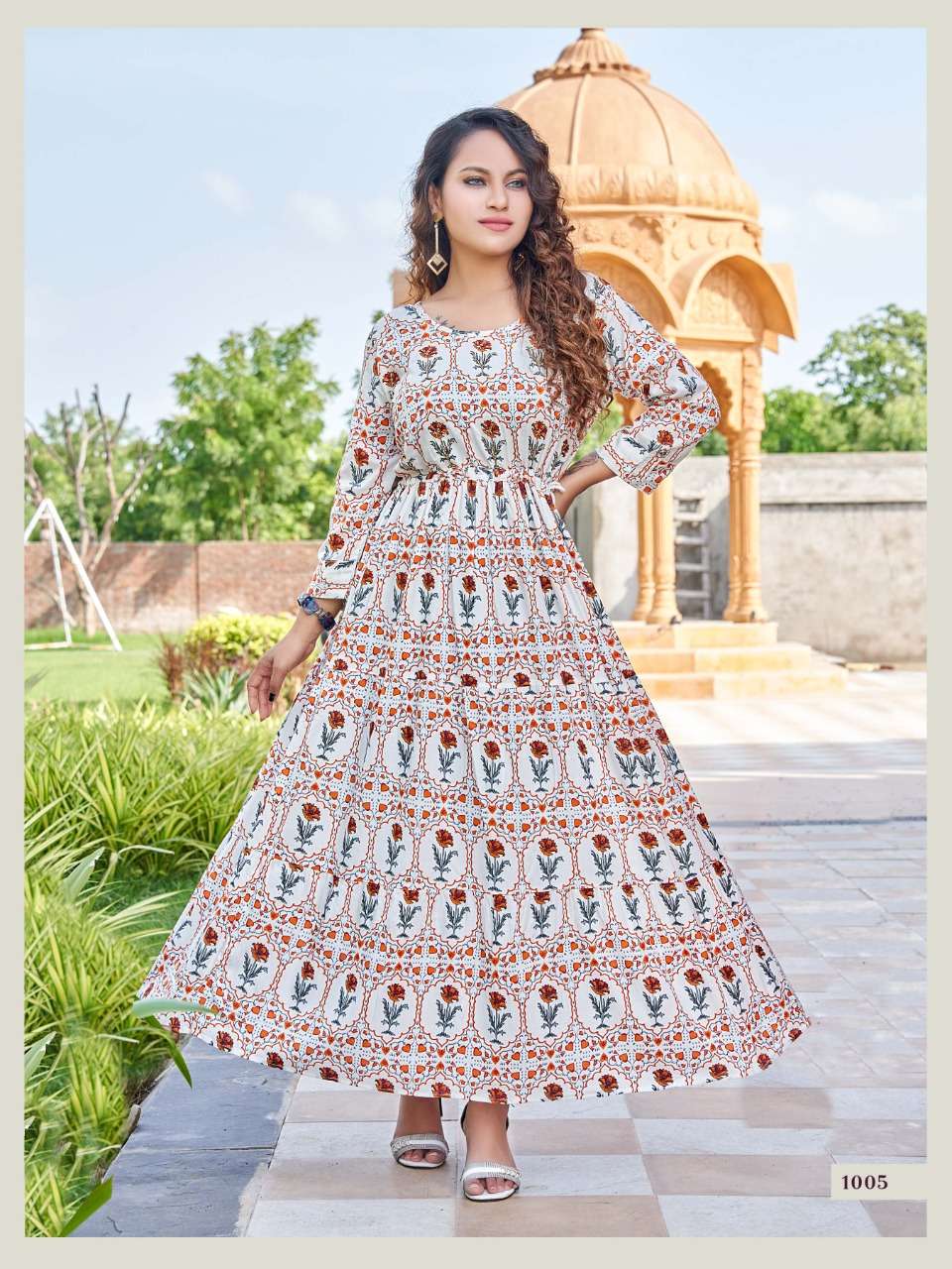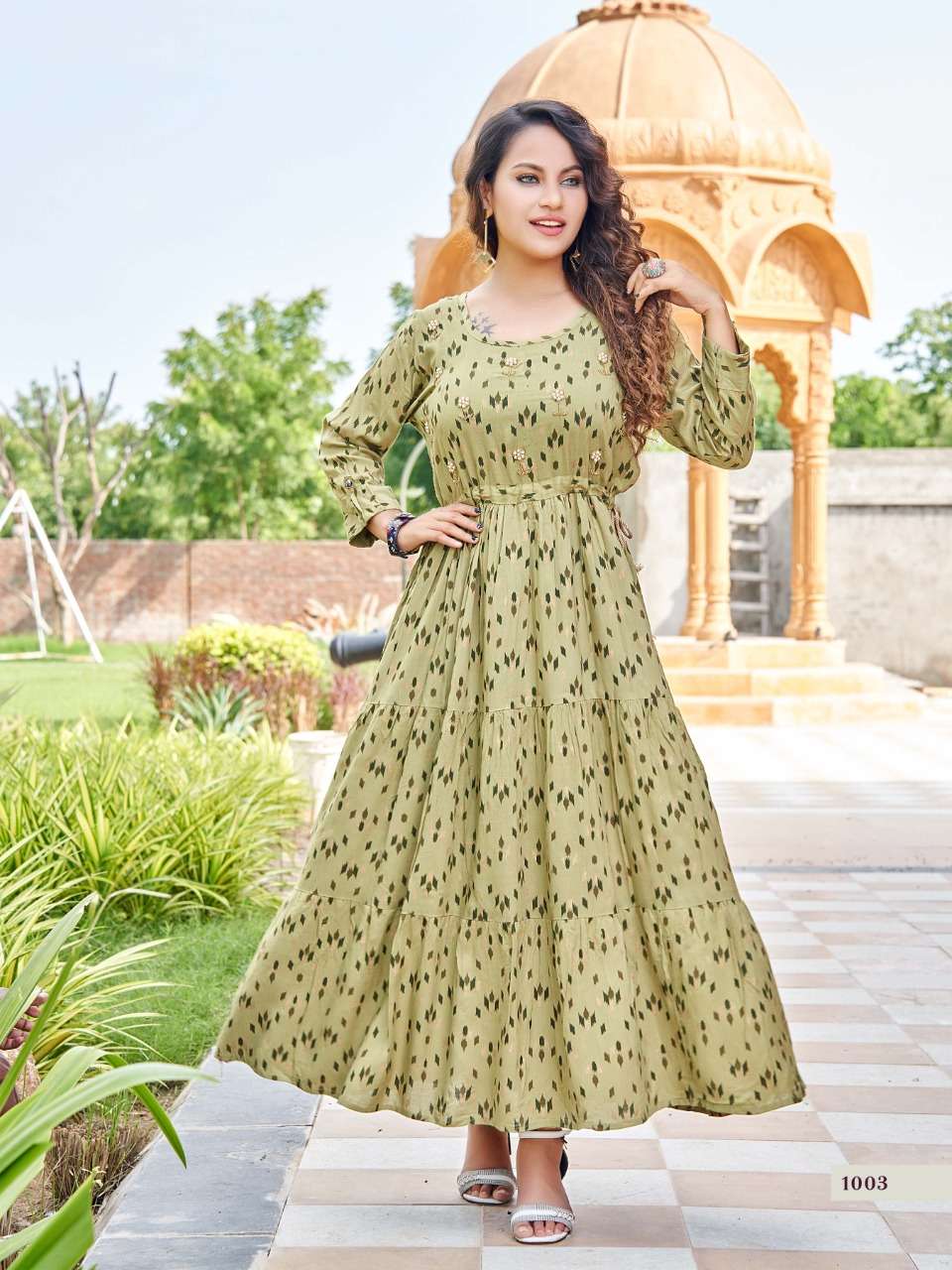 rung presenting sahiba printed rayon with handwork fancy gowns