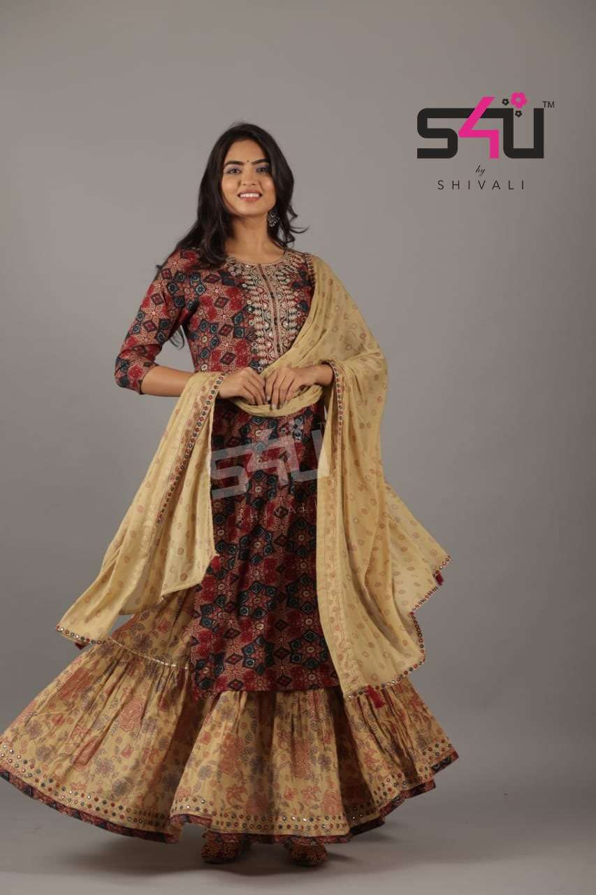 s4u 248 design combo set of top with skirt and dupatta