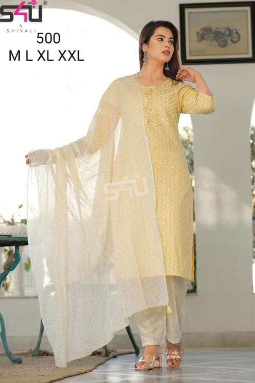s4u 500 design party wear combo set of kurti with bottom and dupatta