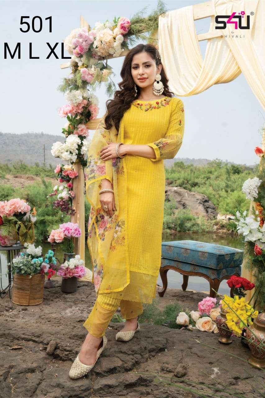 s4u 501 design party wear combo set of kurti with bottom and dupatta