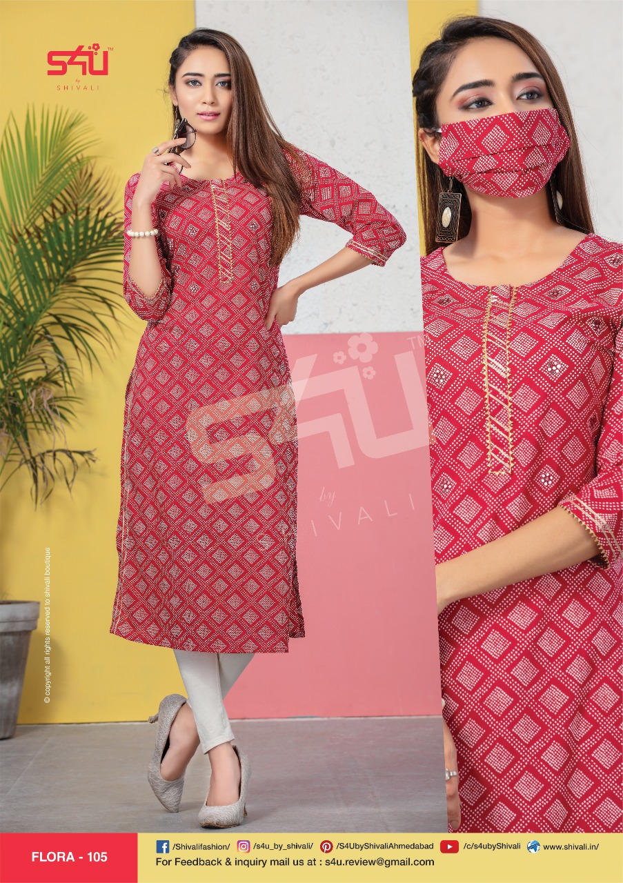 S4u By Shivali Launch Flora Vol 10 Fancy Exclusive Kurti With Mask Wholesaler