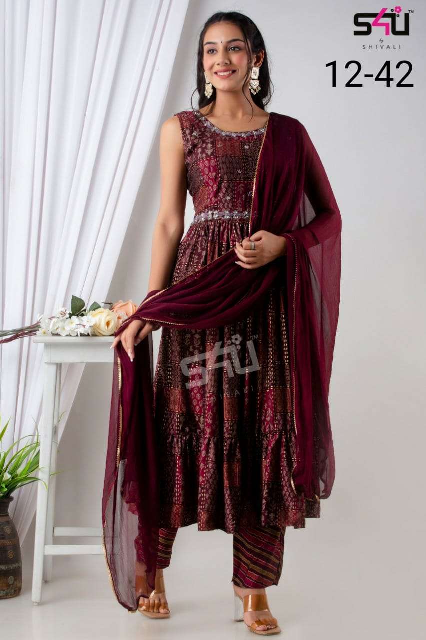 s4u pr 12-42 readymade 3 piece kurti pant dupatta set