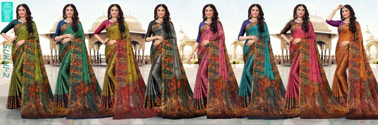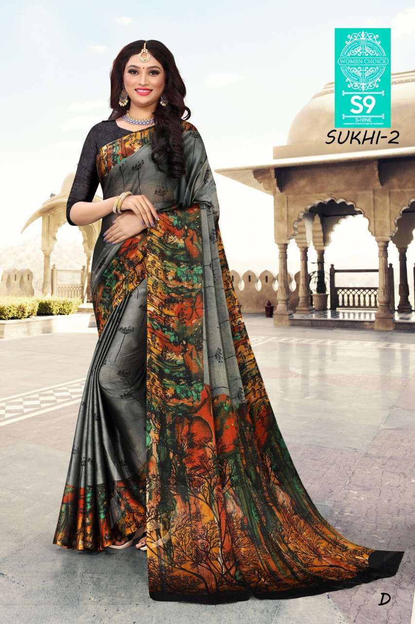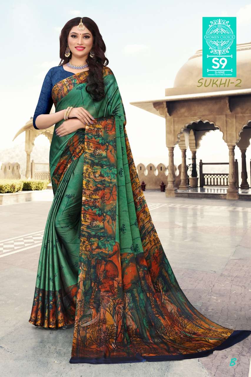 s9 present sukhi vol 2 black moss printed formal wear saree