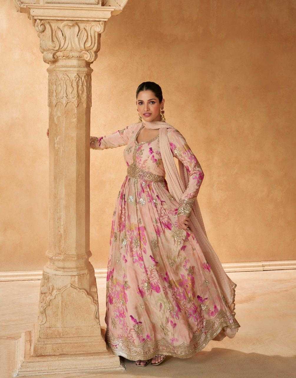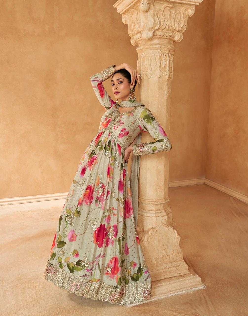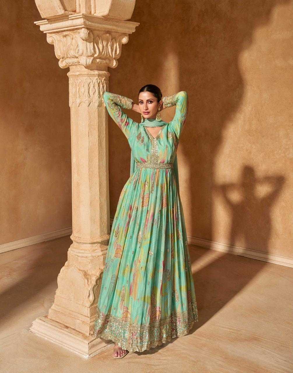 saanj by sayuri designer exclusive chinon silk readymade gown set exports