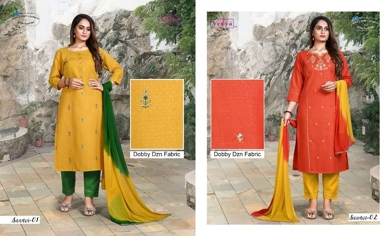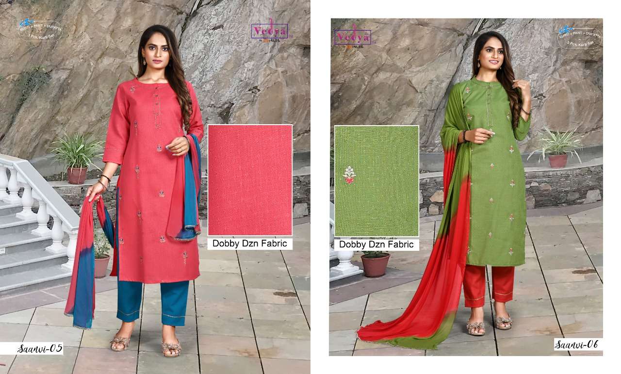 saanvi by vedya readymade fancy kurti with pant & dupatta