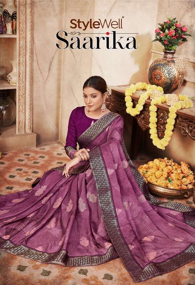 Name: Stylewell Co.---Saarika Foil Print with Jacquard Border on chiffon saree |
