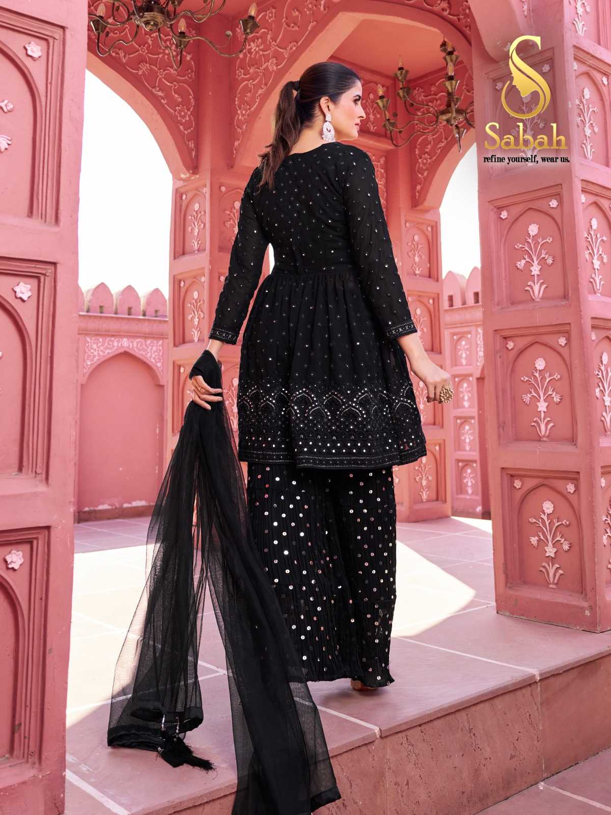 sabah black white 1029-1030 fullstitch embroidery work kurti bottom dupatta