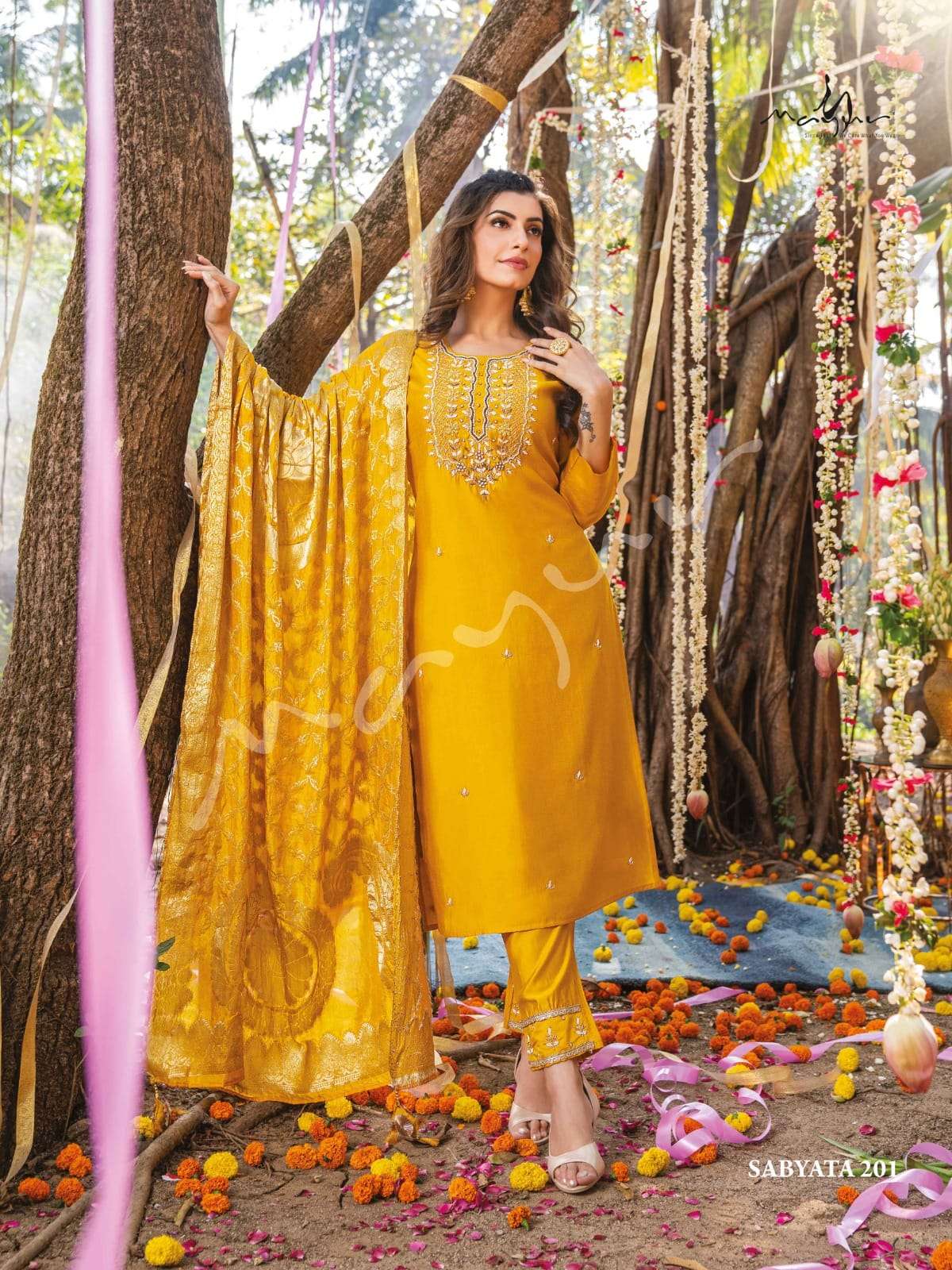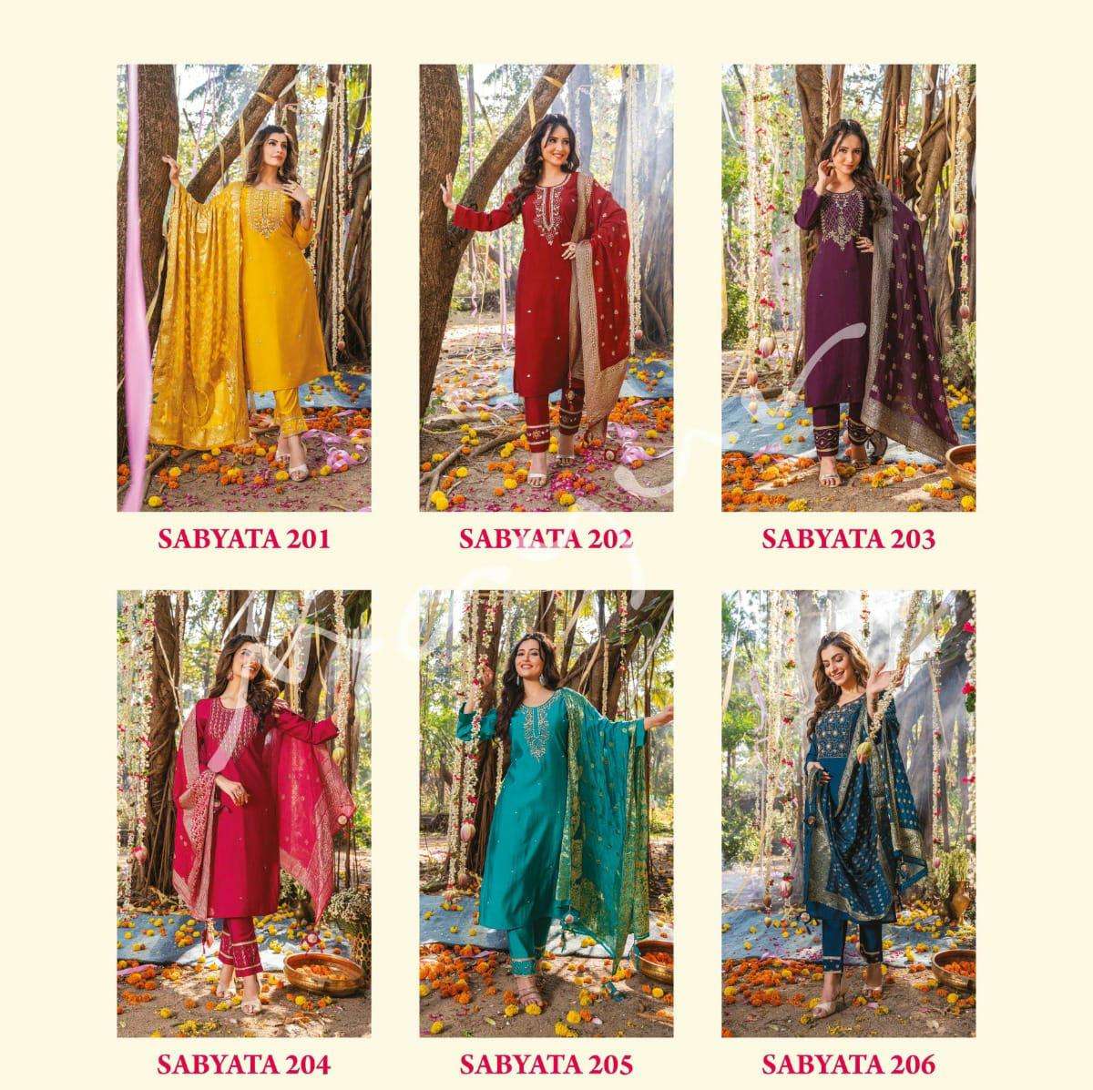 sabyata vol 2 by mayur fashion festive wear designer kurti with pant and banarasi dupatta