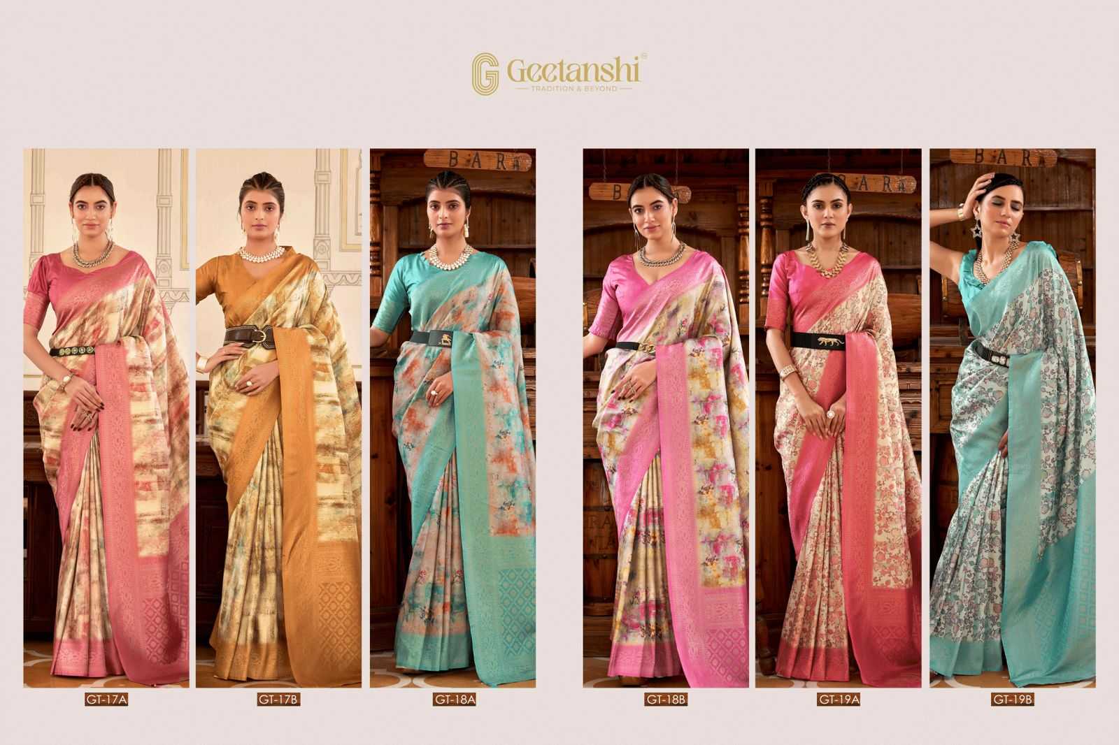 sachita gt17ab to gt 19ab by geetanshi fancy softy nylon festive wear saree