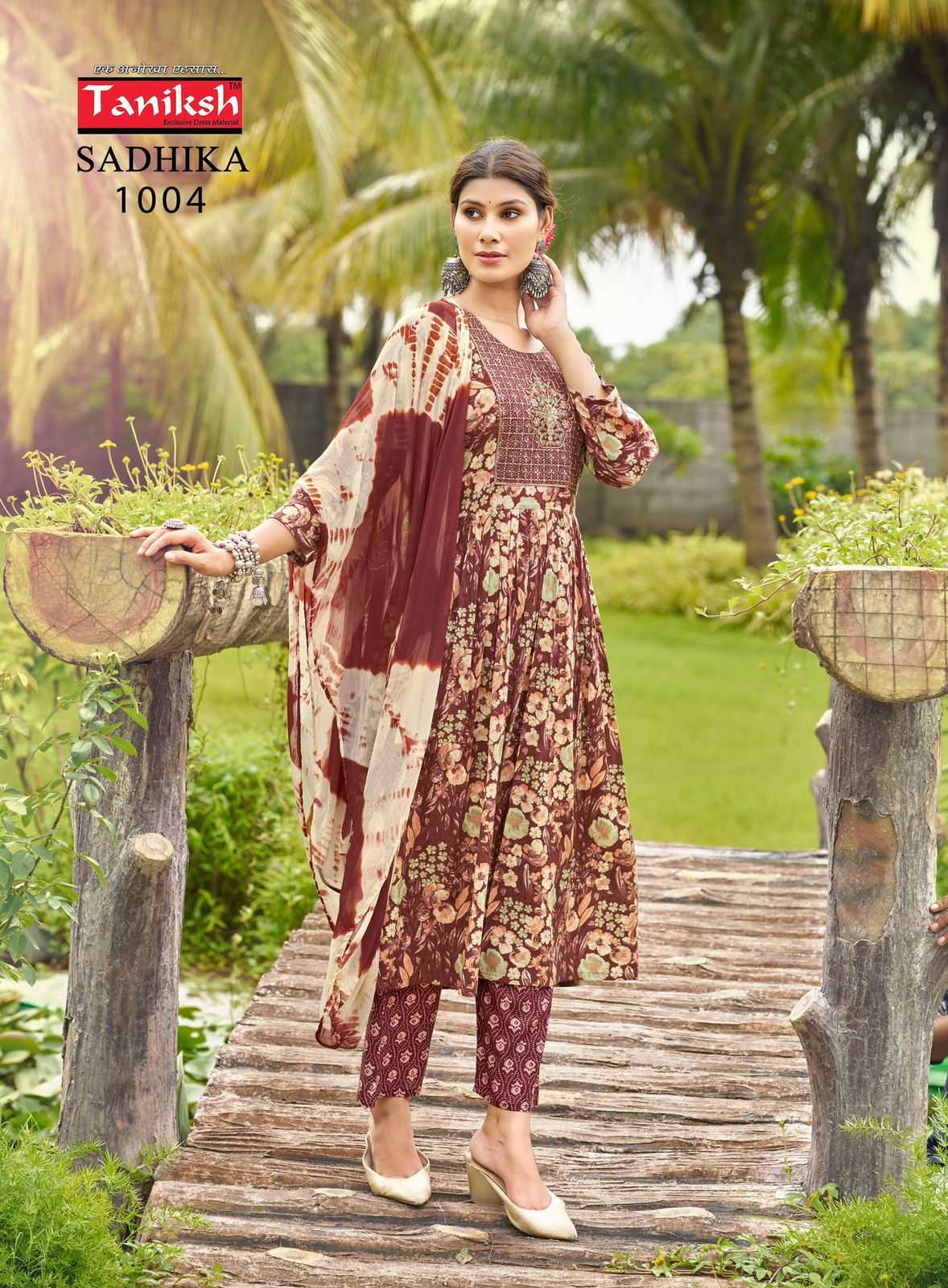 sadhika by taniksh rayon embroidery work elegant style readymade 3pcs suit