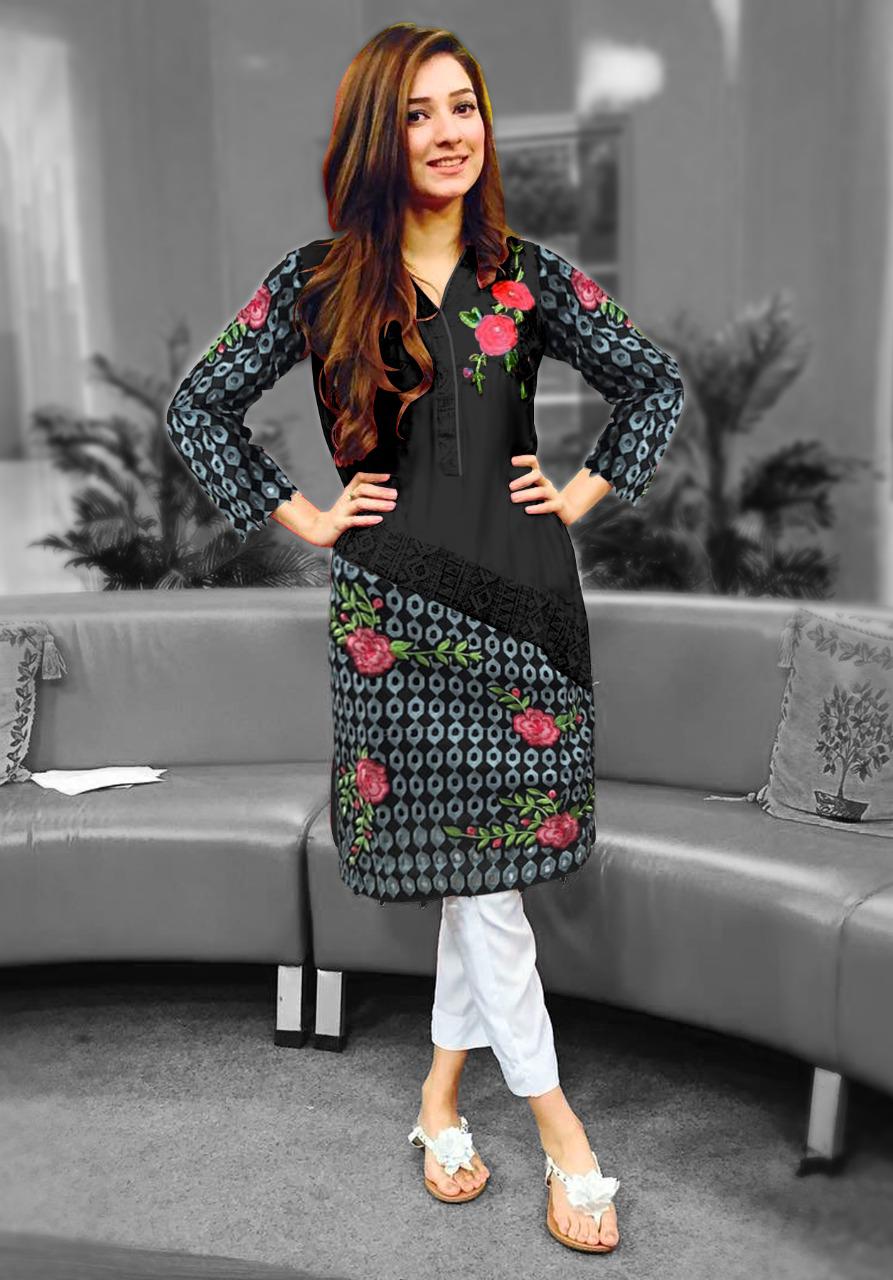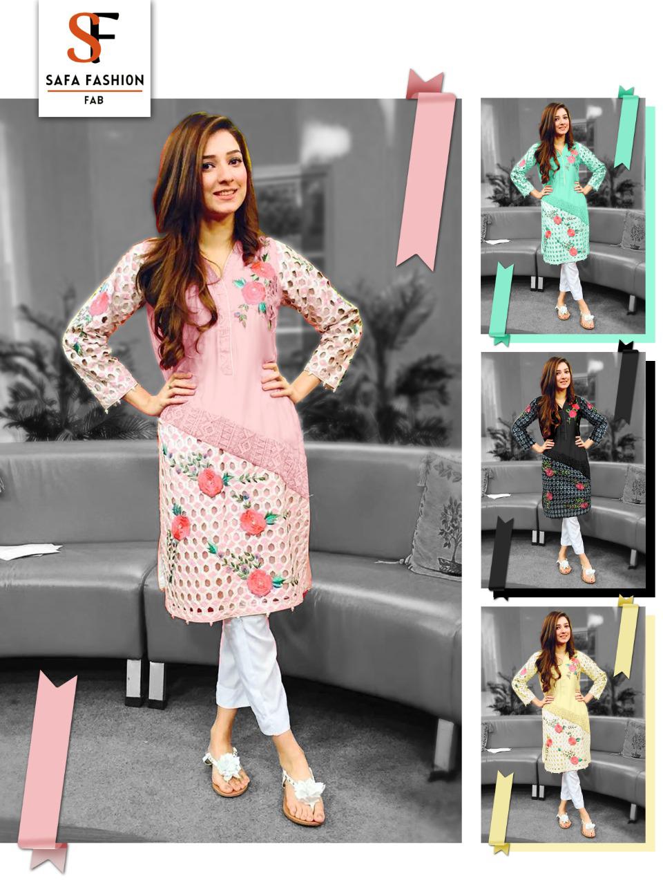 Safa Fashion Luxury Pret Cotton Designer Formal Wear Unique Kurti With Bottom