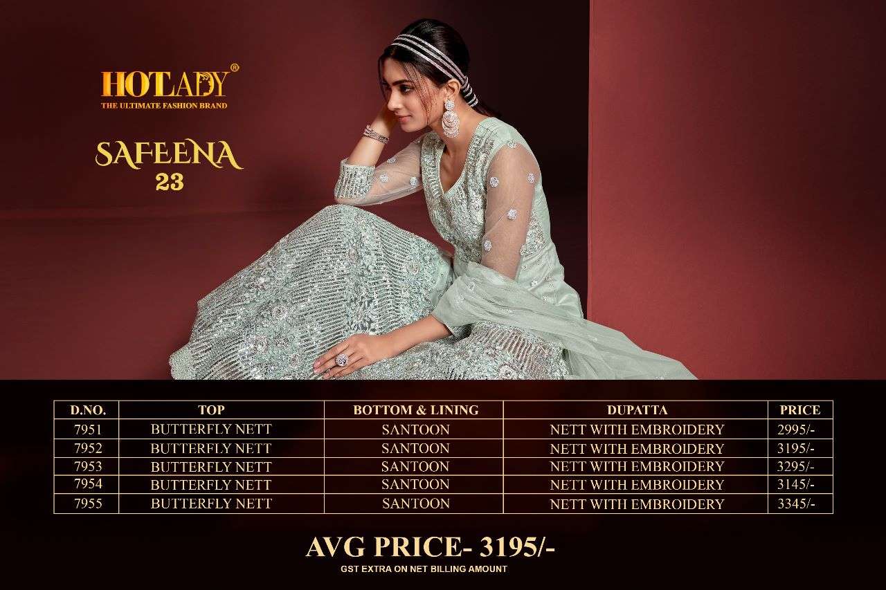 HOTLADY©️ Presents ⭐SAFEENA-23🌟 5 DESIGNS AVG PRICE - 3195/- Design no. - 7951 to 7955 DELIVERY - 04/03/2023 |