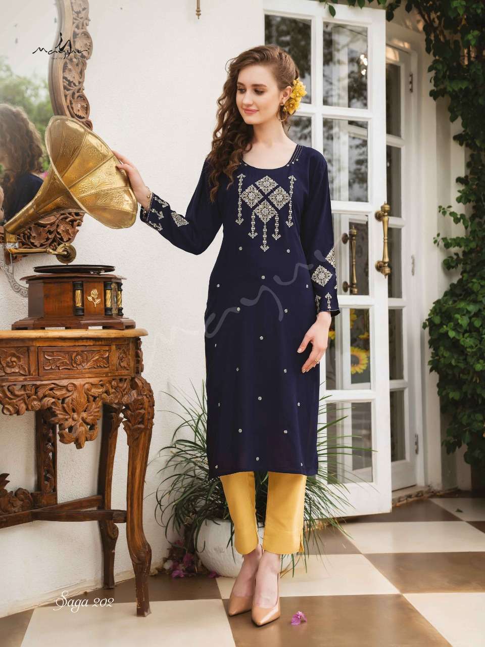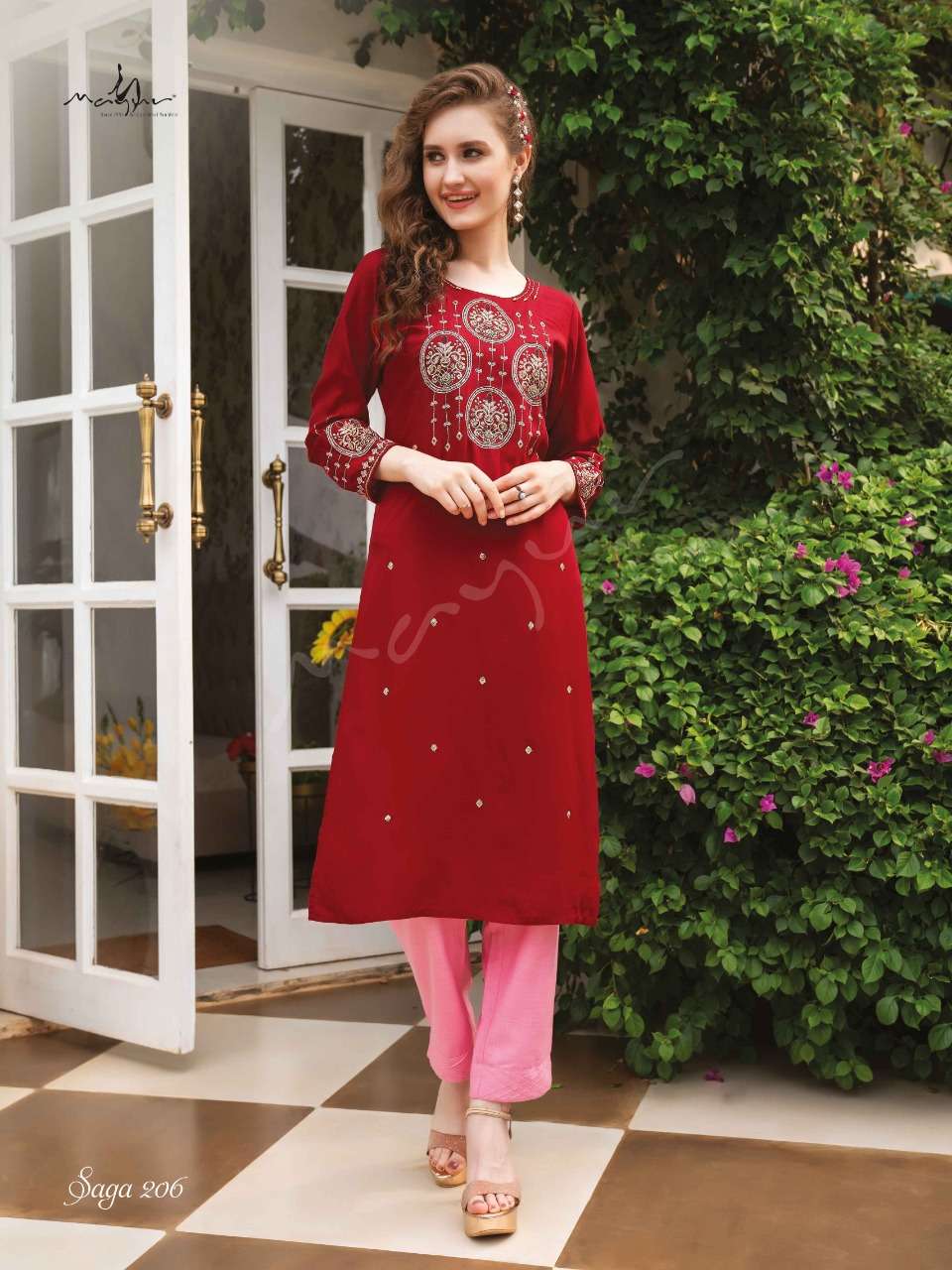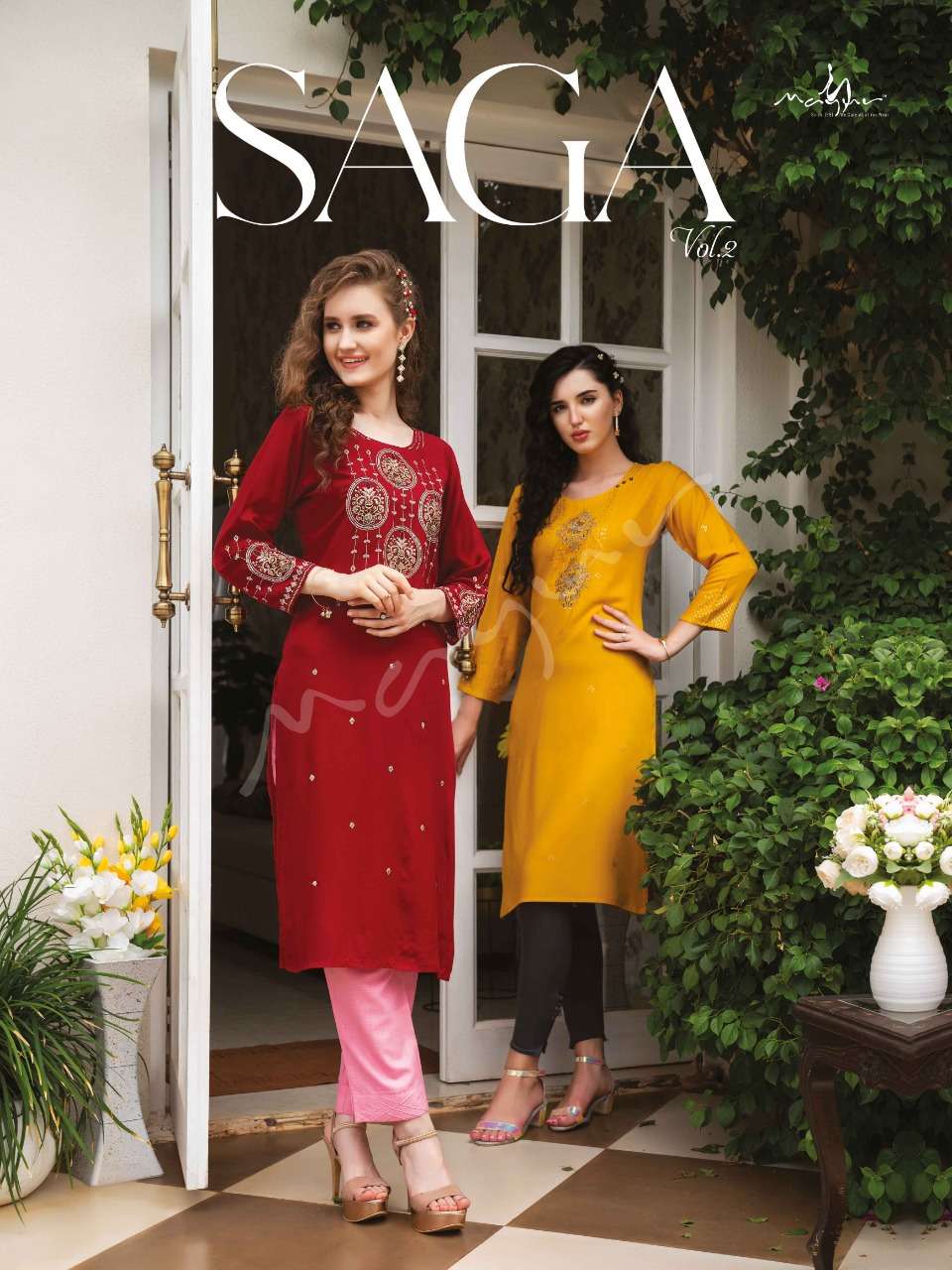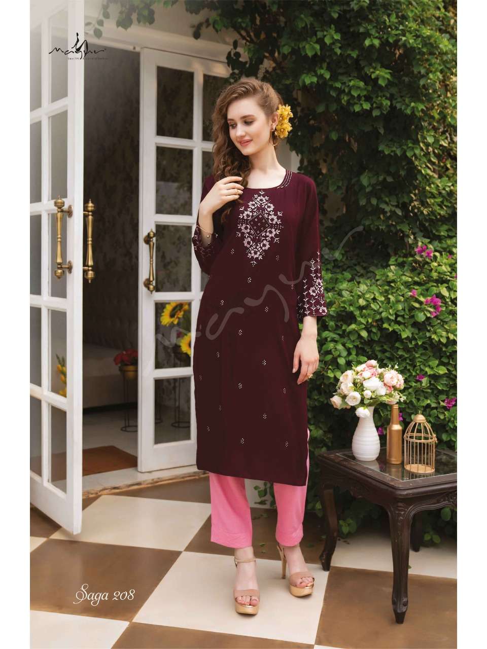 saga vol 2 by mayur rayon liva fabrics designer kurti