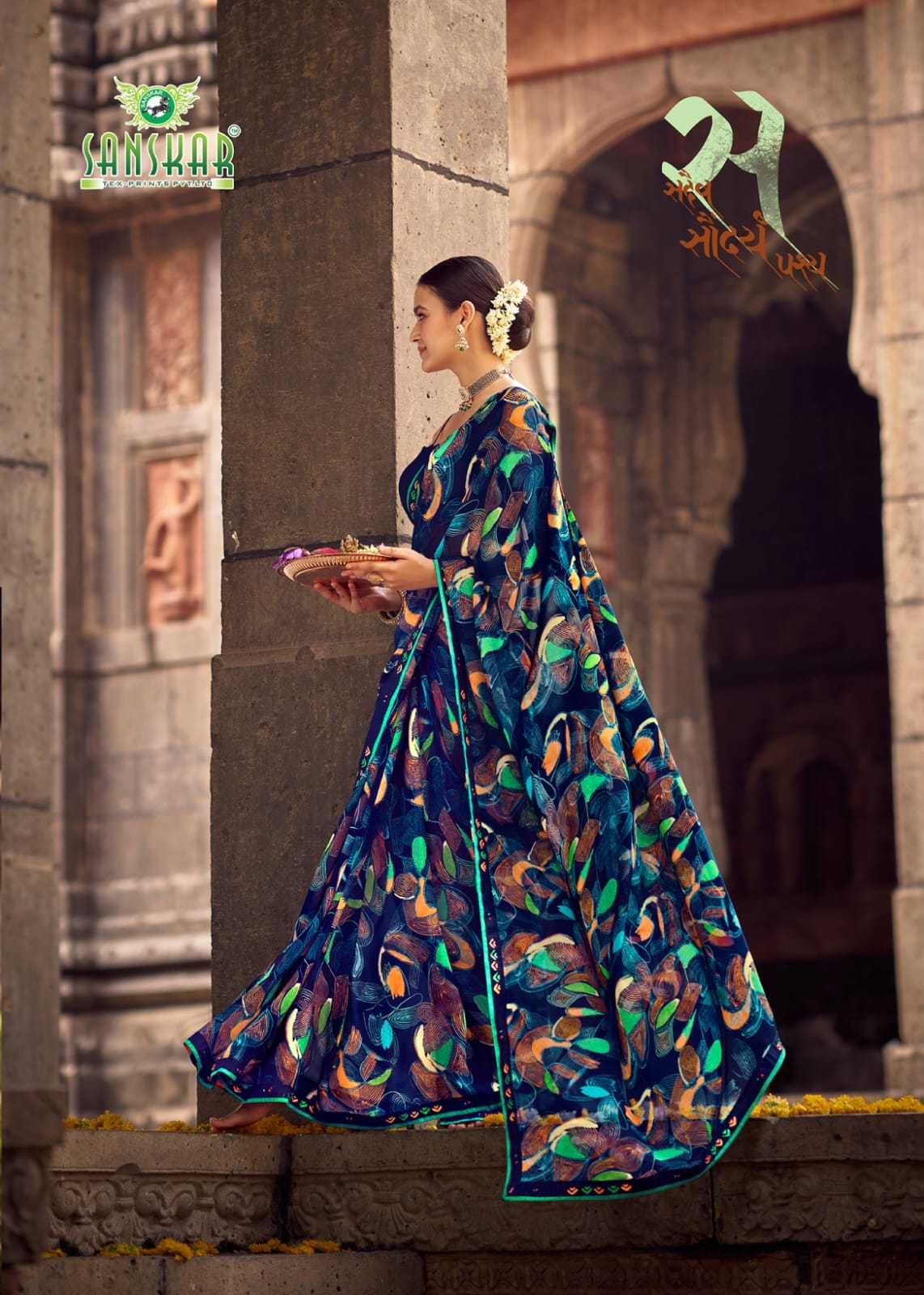 Sanskar tex prints pvt. ltd. CATLOUGE-SAHELEE SE BAATEN Fabric- pure weightless with fancy embroidery digital, work border & blouse Qty- 12 Design RATE - 550₹ |