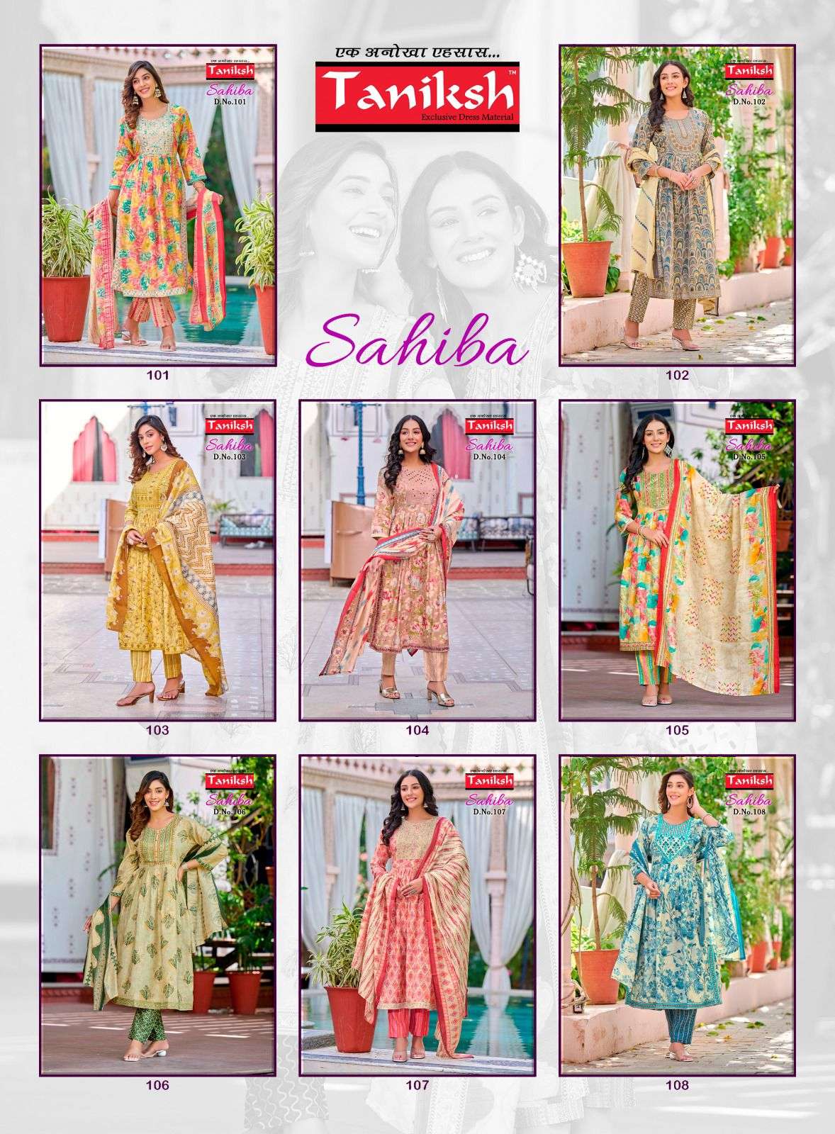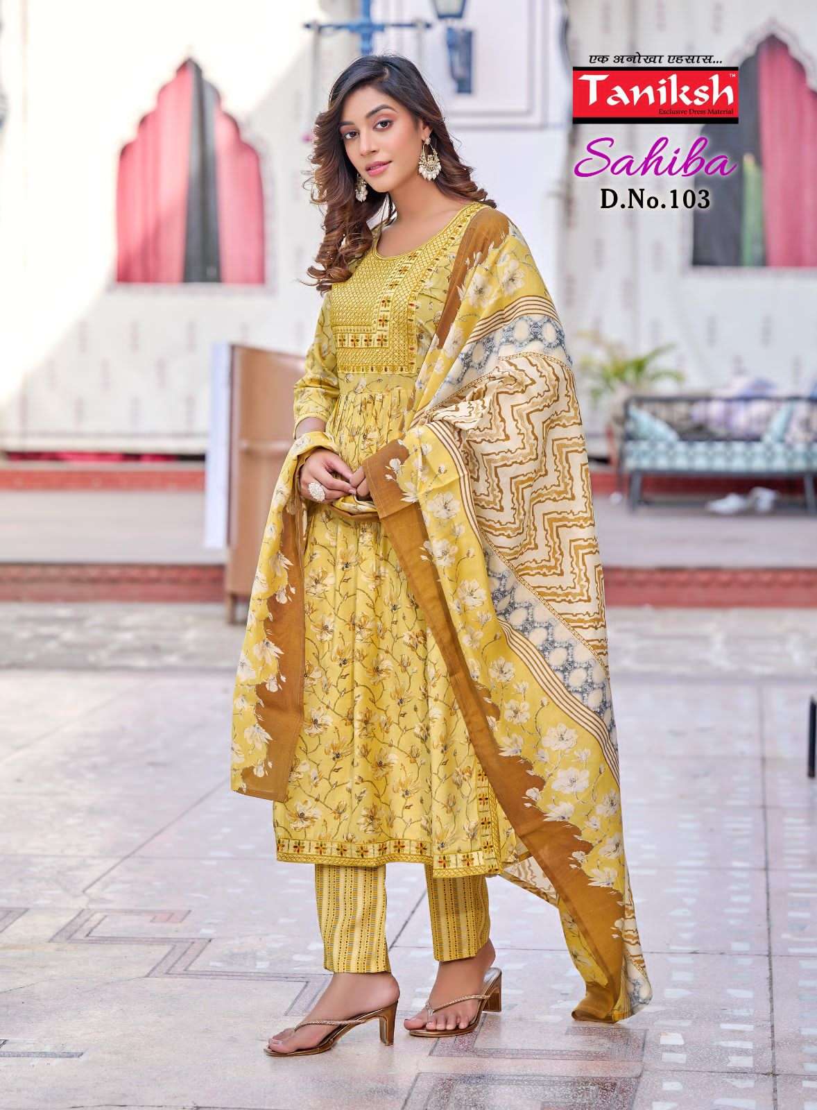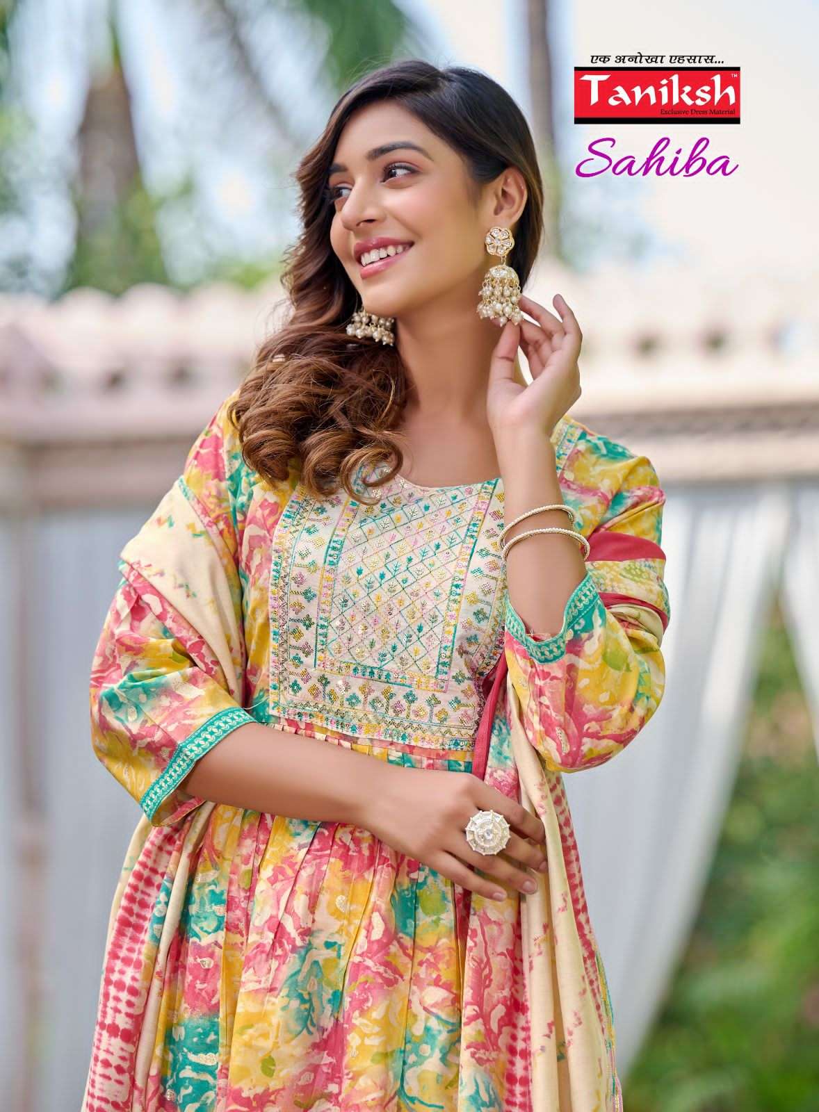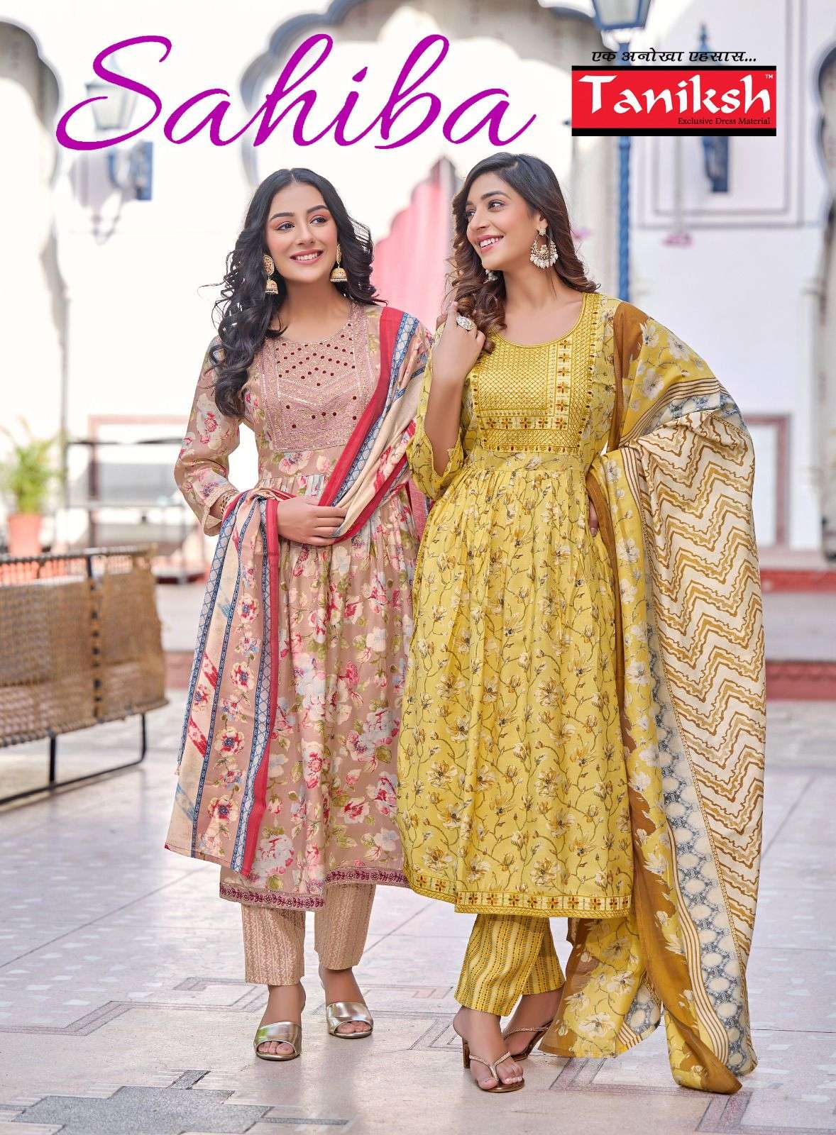 sahiba by taniksh muslin printed fancy nayra style kurti with pant and dupatta