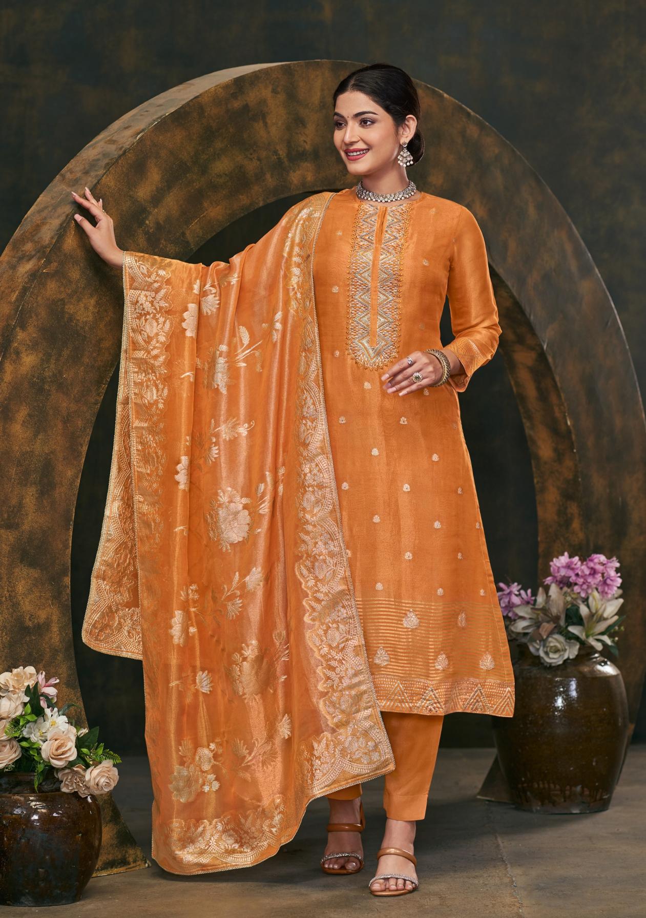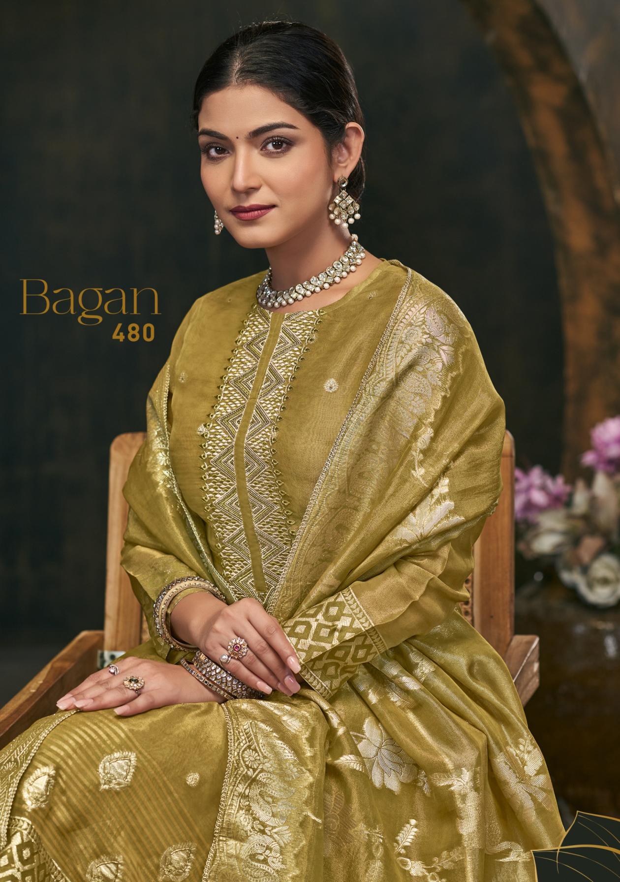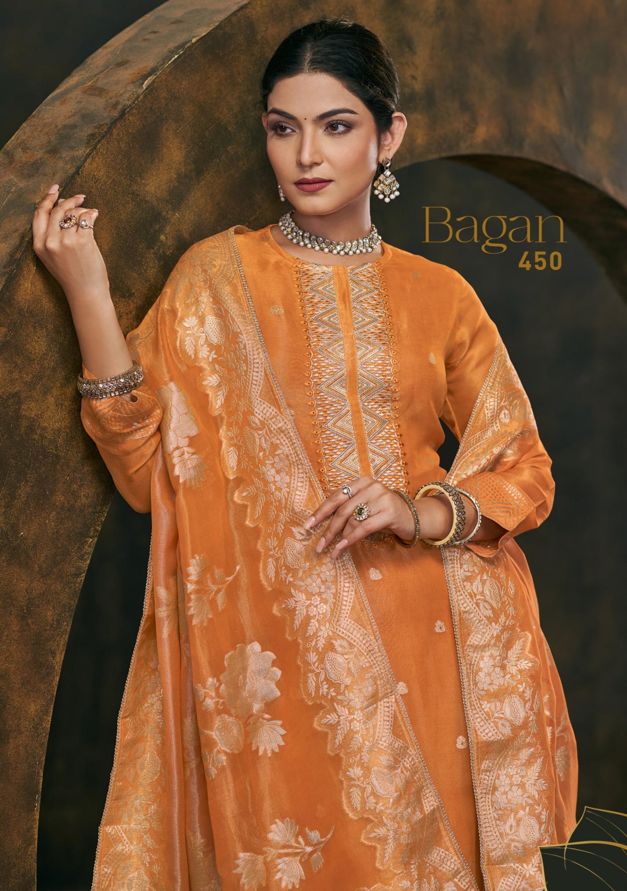 sahiba launches bagan heavy silk 3pcs unstitch top bottom and dupatta
