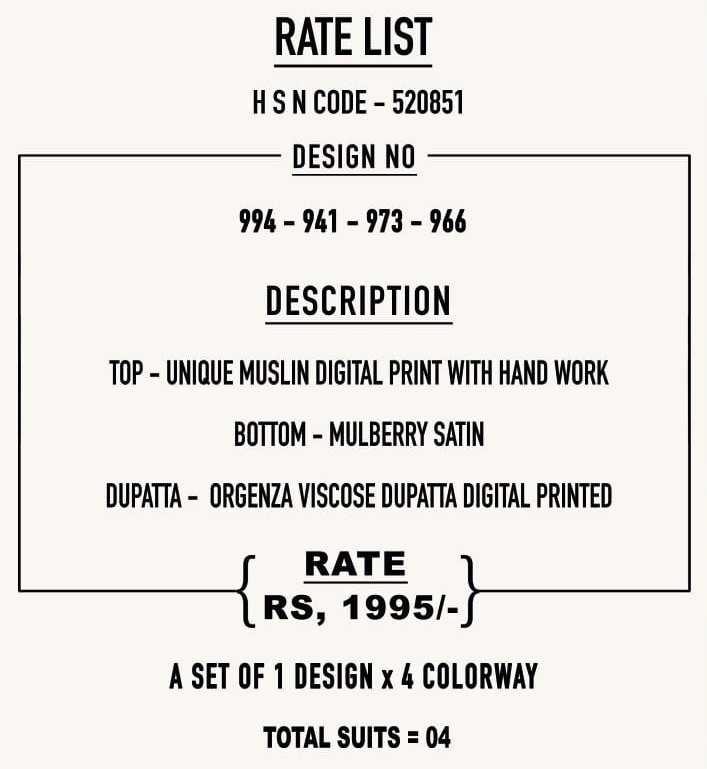 SAHIBA TOP - UNIQUE MUSLIN DIGITAL PRINT WITH HAND WORK BOTTOM - MULBERRY SATIN DUPATTA - ORGENZA VISCOSE DUPATTA DIGITAL PRINTED RATE: GST EXTRA Set to set |