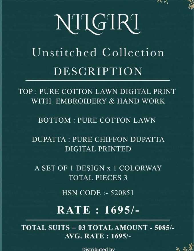 sahiba nilgiri adorable cotton lawn digita print with handwork dress material