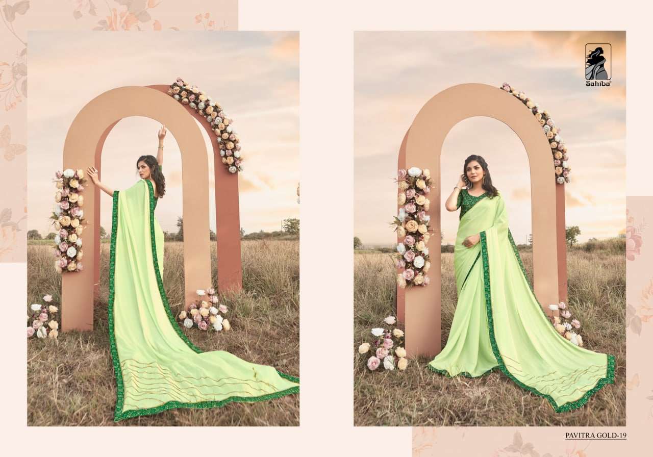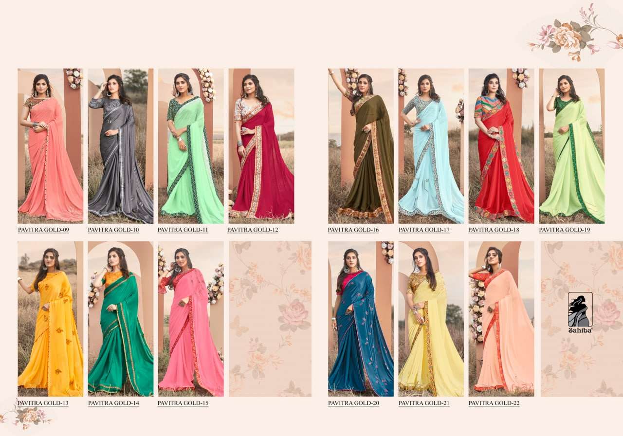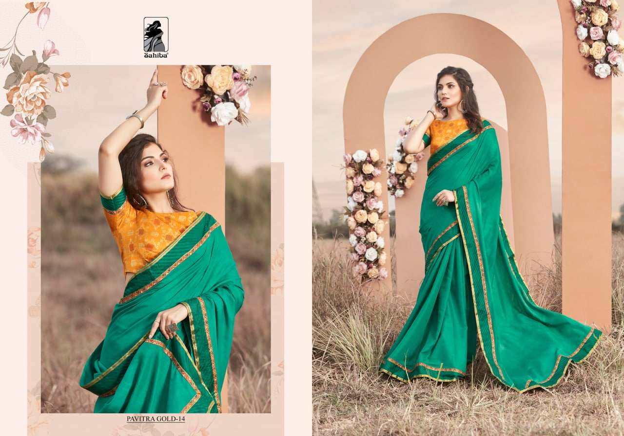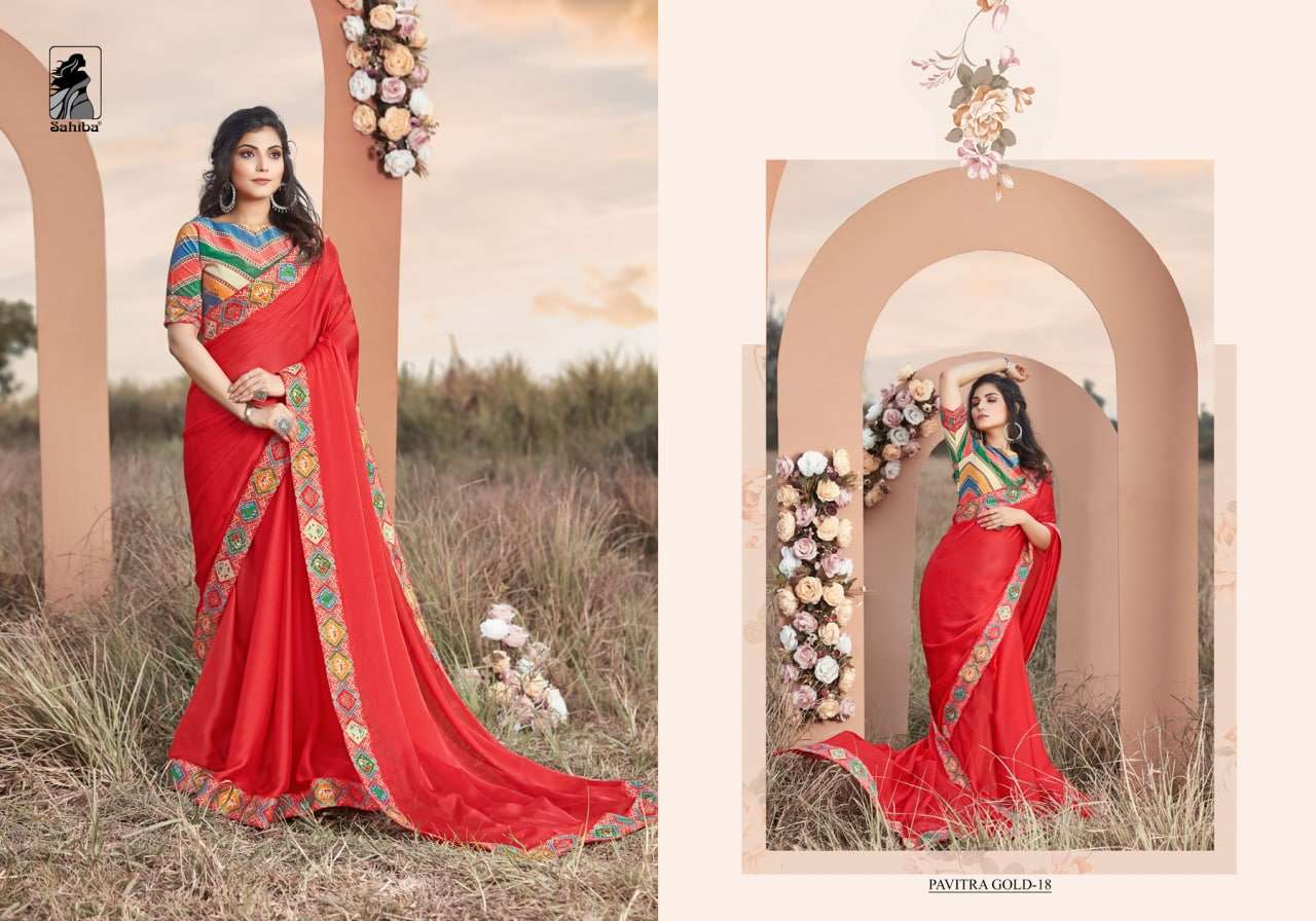 Brand - Sahiba . Type - saree. Catlog name - pavitra Gold . 990+GST All Fancy fabric Like Satin Jorget Rangoli Set to set. Delivery 2 days |
