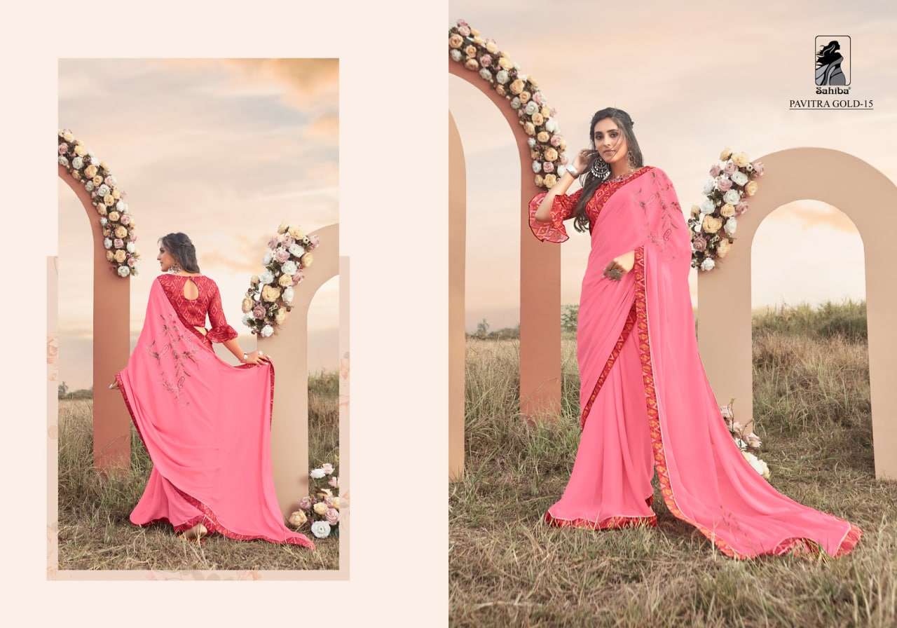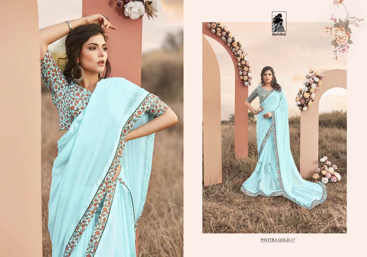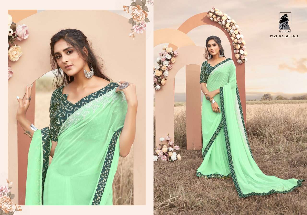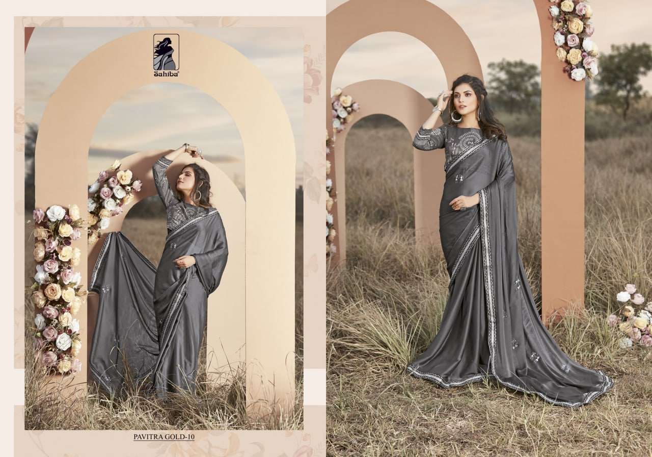 Brand - Sahiba . Type - saree. Catlog name - pavitra Gold . 990+GST All Fancy fabric Like Satin Jorget Rangoli Set to set. Delivery 2 days |