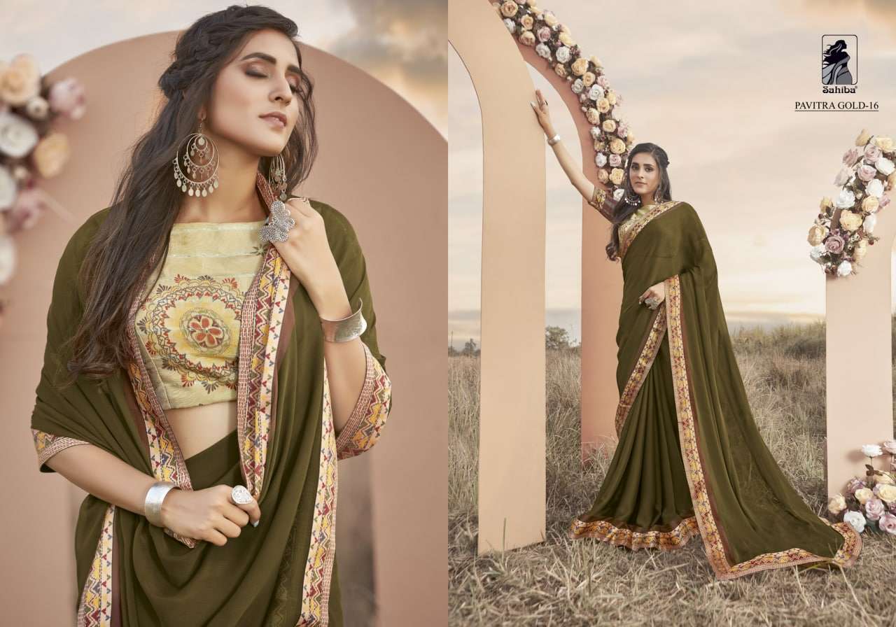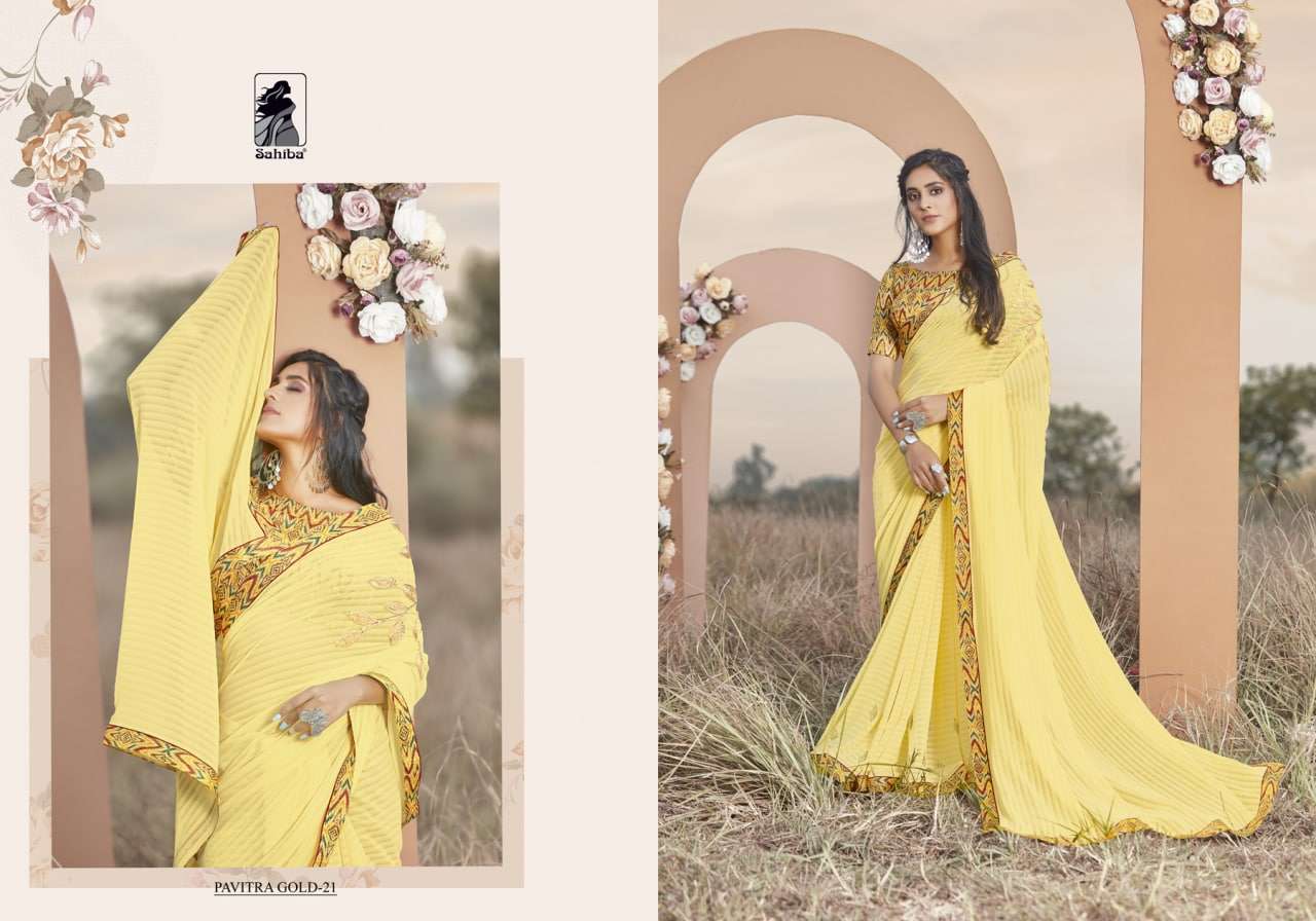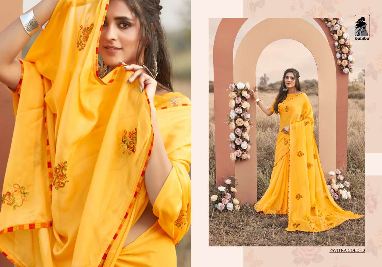 Sahiba Pavitra Gold Ethnic Wear Fancy Saree Wholesaler