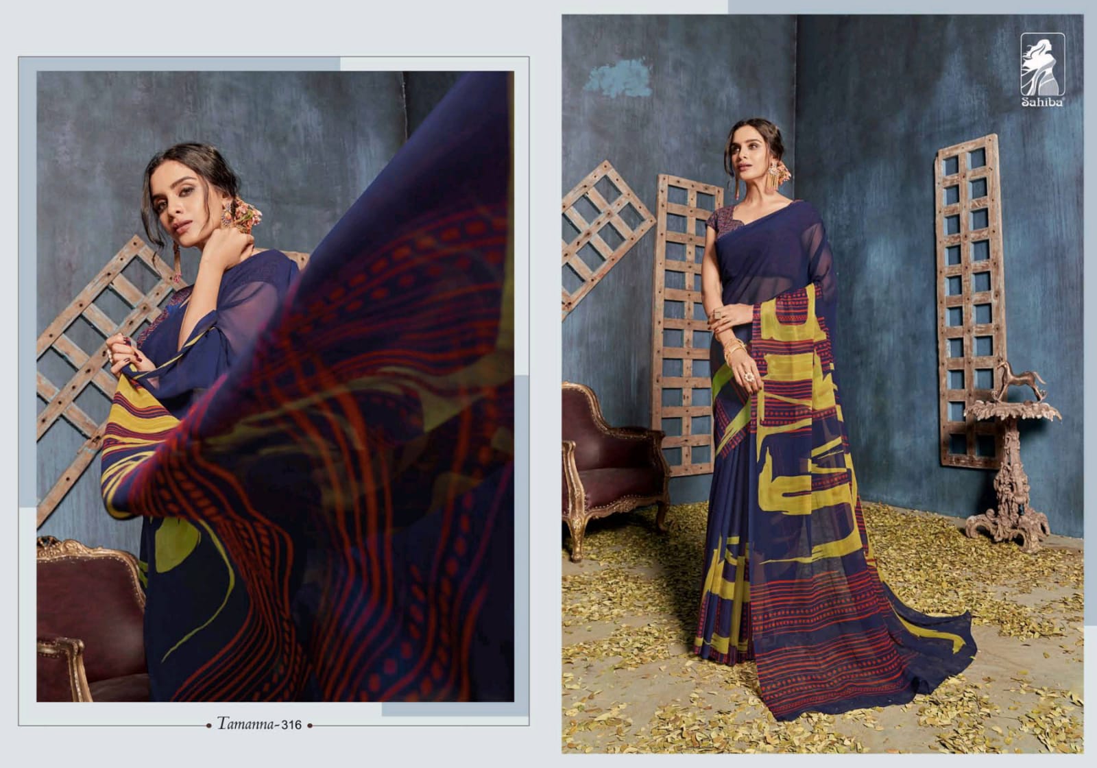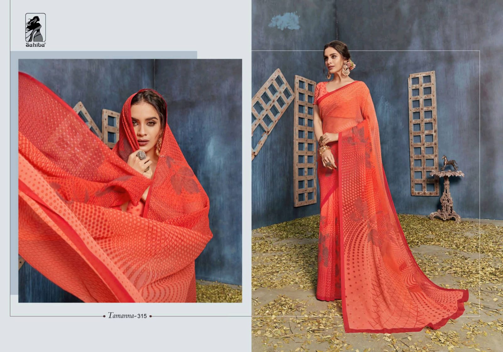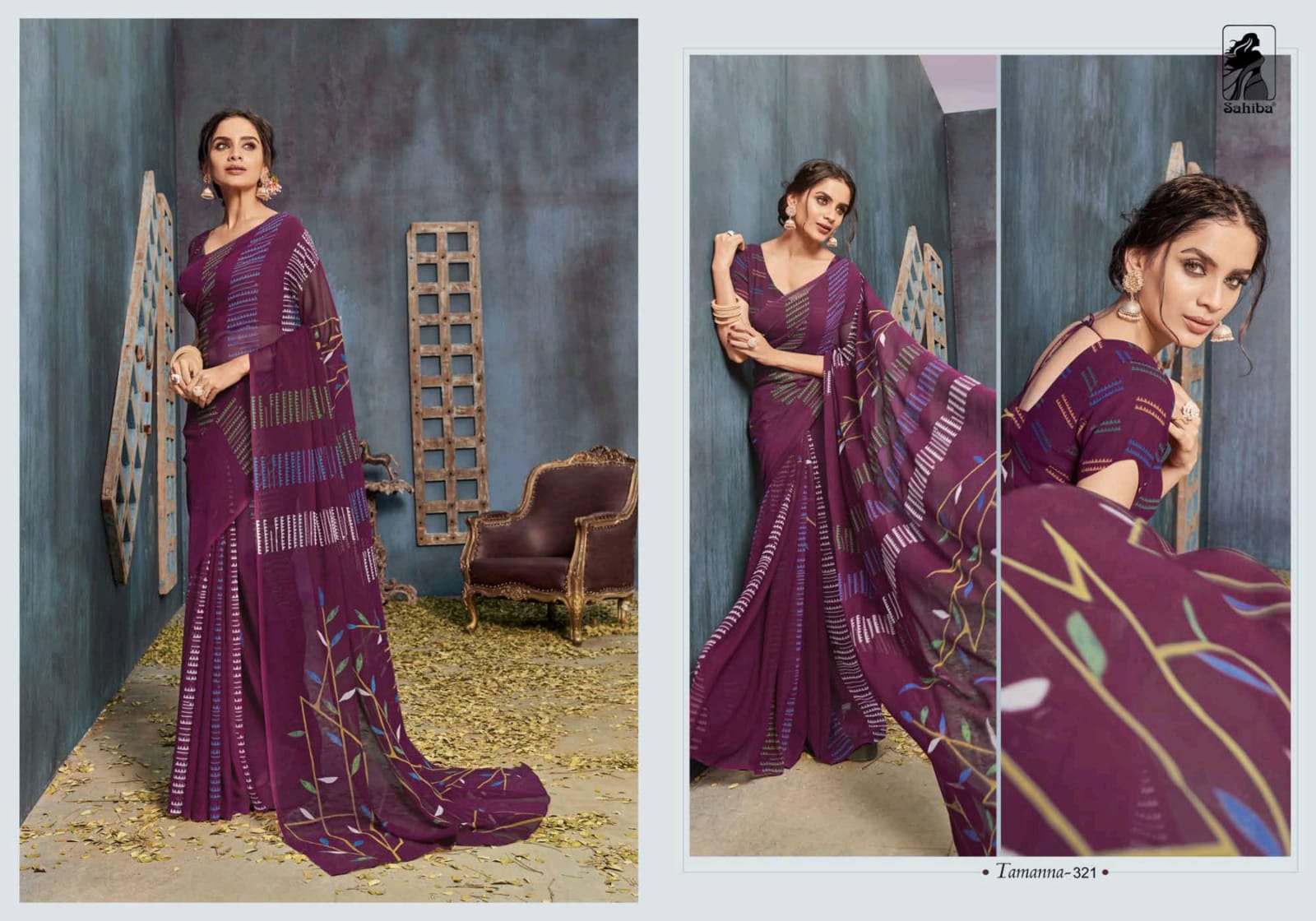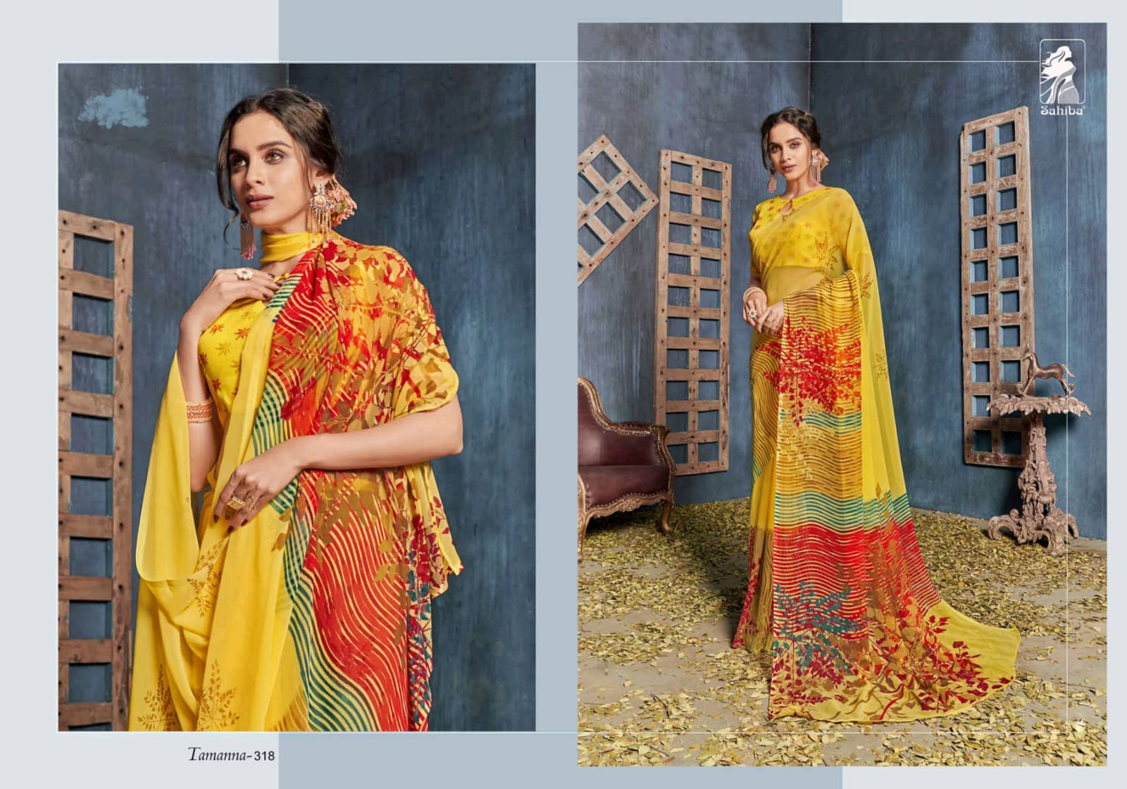 Sahiba Presenting Tamanna Vol 3 Colourful Printed Velvet Georgette Casual Wear Saree