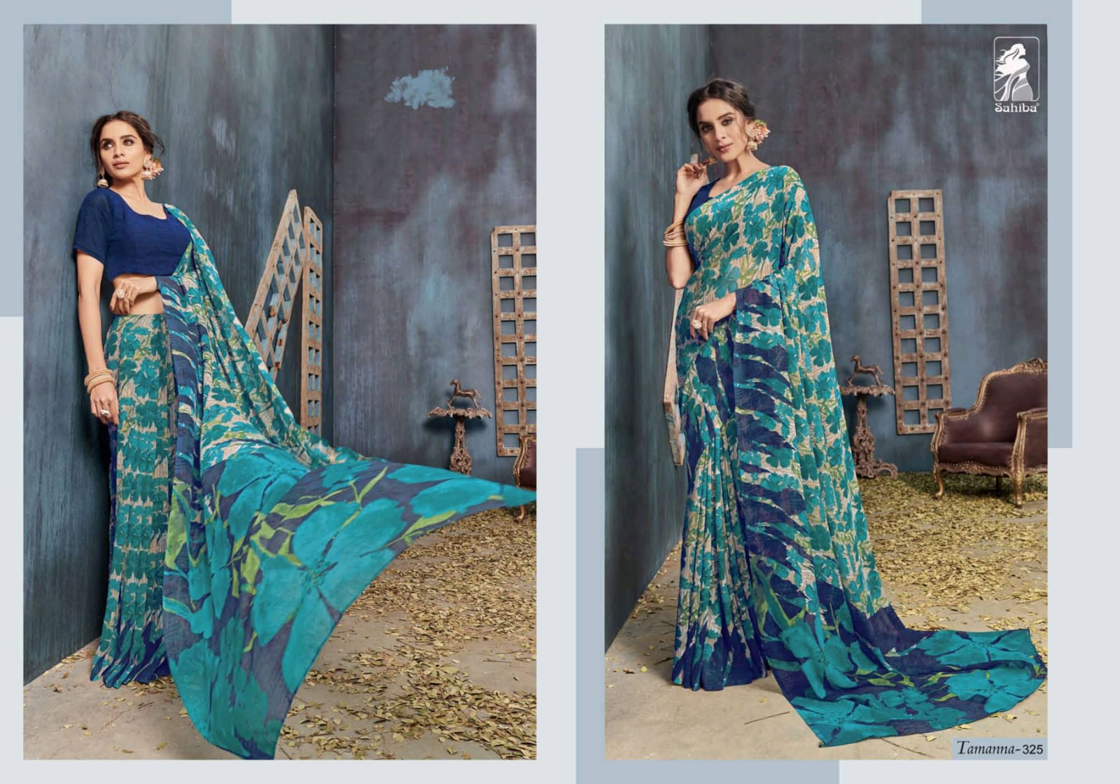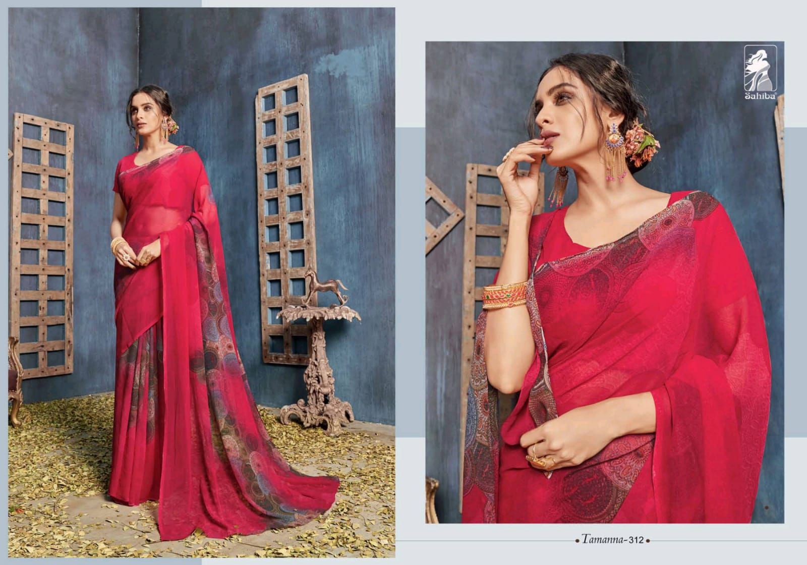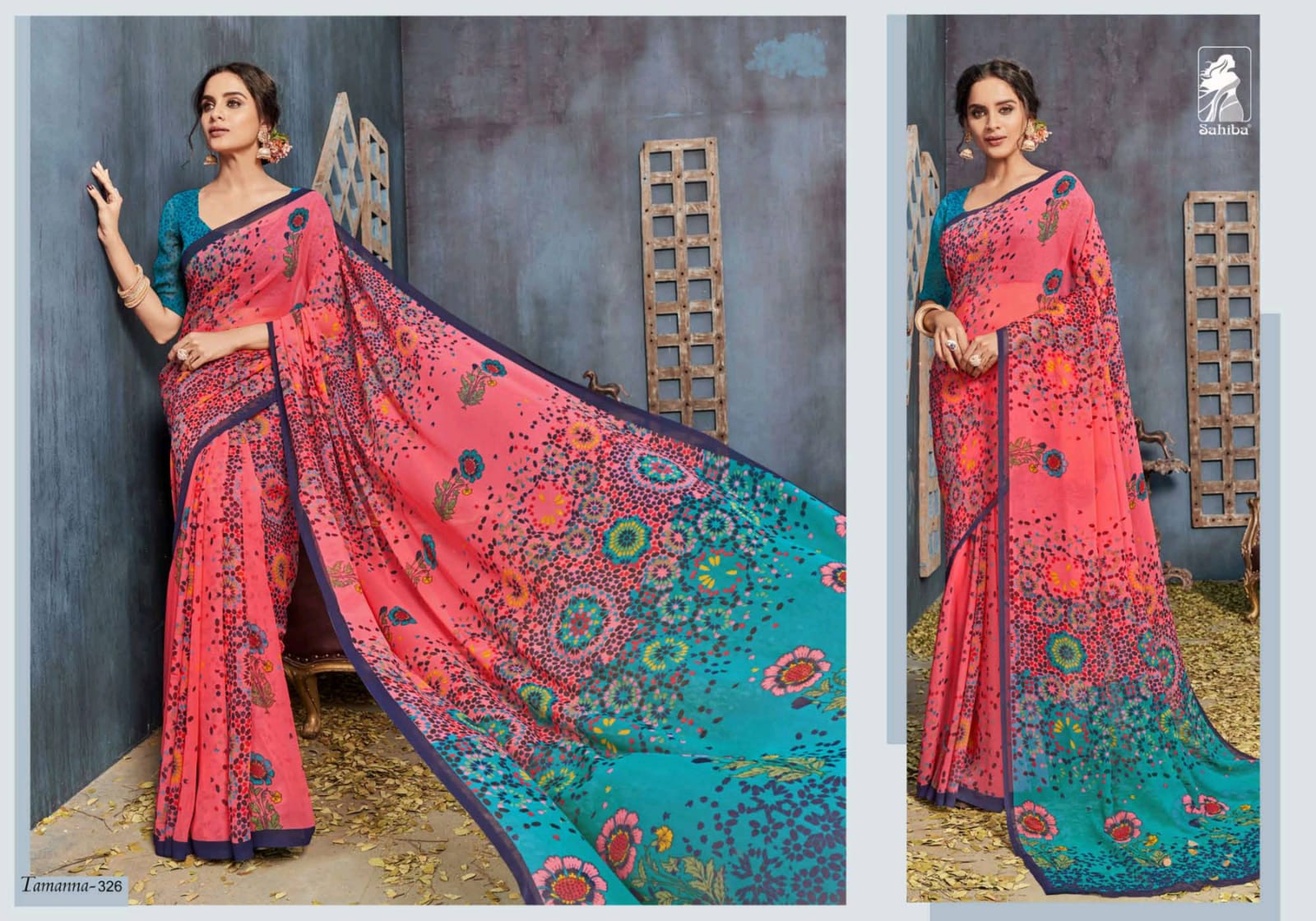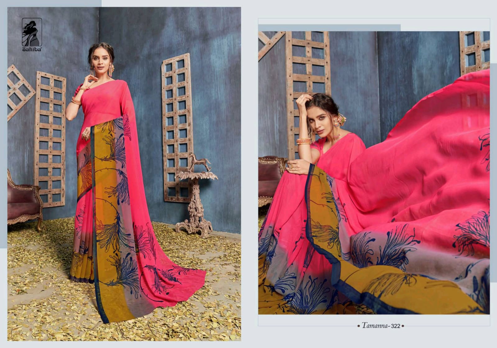 Sahiba Presenting Tamanna Vol 3 Colourful Printed Velvet Georgette Casual Wear Saree
